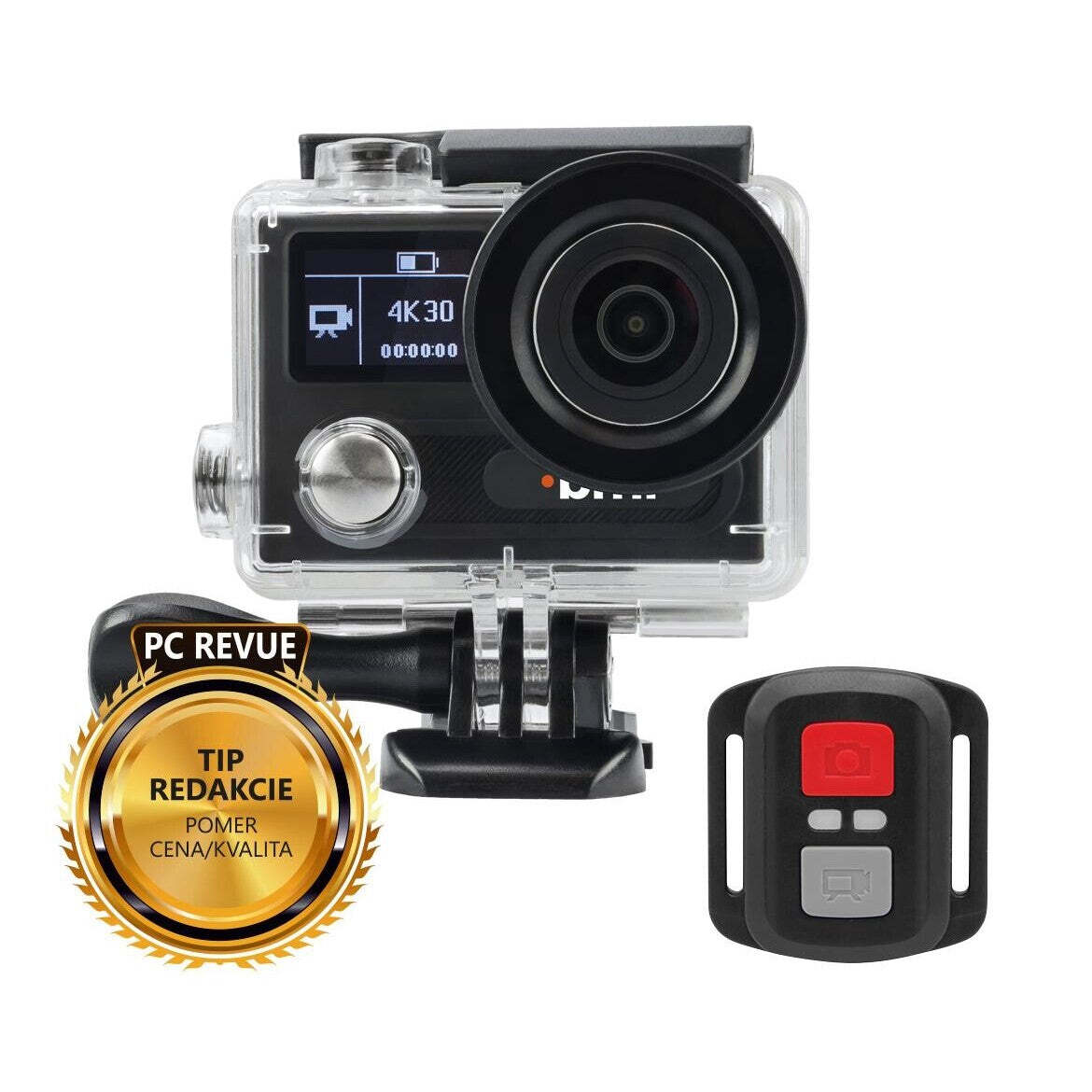 Nadupané vybavenieVďaka jemnému a 2.0 "displeju, ktorý dominuje zadnej strane kamery, možno ľahko pracovať v menu kamery a tiež sa pochváliť priateľom s natočenými zábermi. Kontrola nastaveného módu a nahrávacieho režimu nikdy nebola jednoduchšia. Takmer palcový LCD displej, ktorý sa nachádza na prednej strane kamery cShot5 poteší asi každého, kto už s akčnými kamerami predtým nakrúcal. Vymeniteľná batéria s vysokou kapacitou 1050 mAh umožní nahrať až 90 minút záznamu. V základnom balení je ku kamere pribalený diaľkový ovládač. Nechýba ale ani nepreberné množstvo ďalšieho príslušenstva ako napríklad púzdro vodotesné do 30 metrov. |