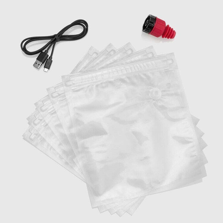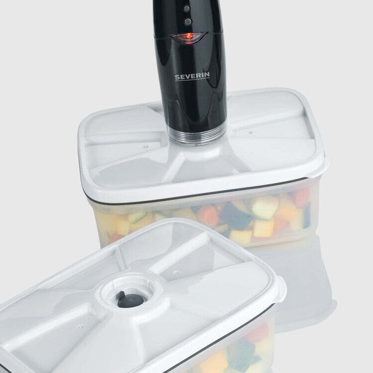Jednoduchá manipuláciaVákuovačka je bezdrôtová, takže vám už nebude prekážať žiadny kábel. Jednoducho dáte prebytočné potraviny do fólie, z ktorej prístroj pomocou vákuovej pumpy odstráni všetok vzduch, potom prístroj fóliu zvarí a je hotovo. Potraviny vám vydržia oveľa dlhšie, takže nebudete musieť vyhadzovať pokazené jedlo a zároveň ušetríte aj peniaze. Multi použitia: plne vákuový výkon pre vákuové vaky so zipsom, vákuové misky a fľaše.