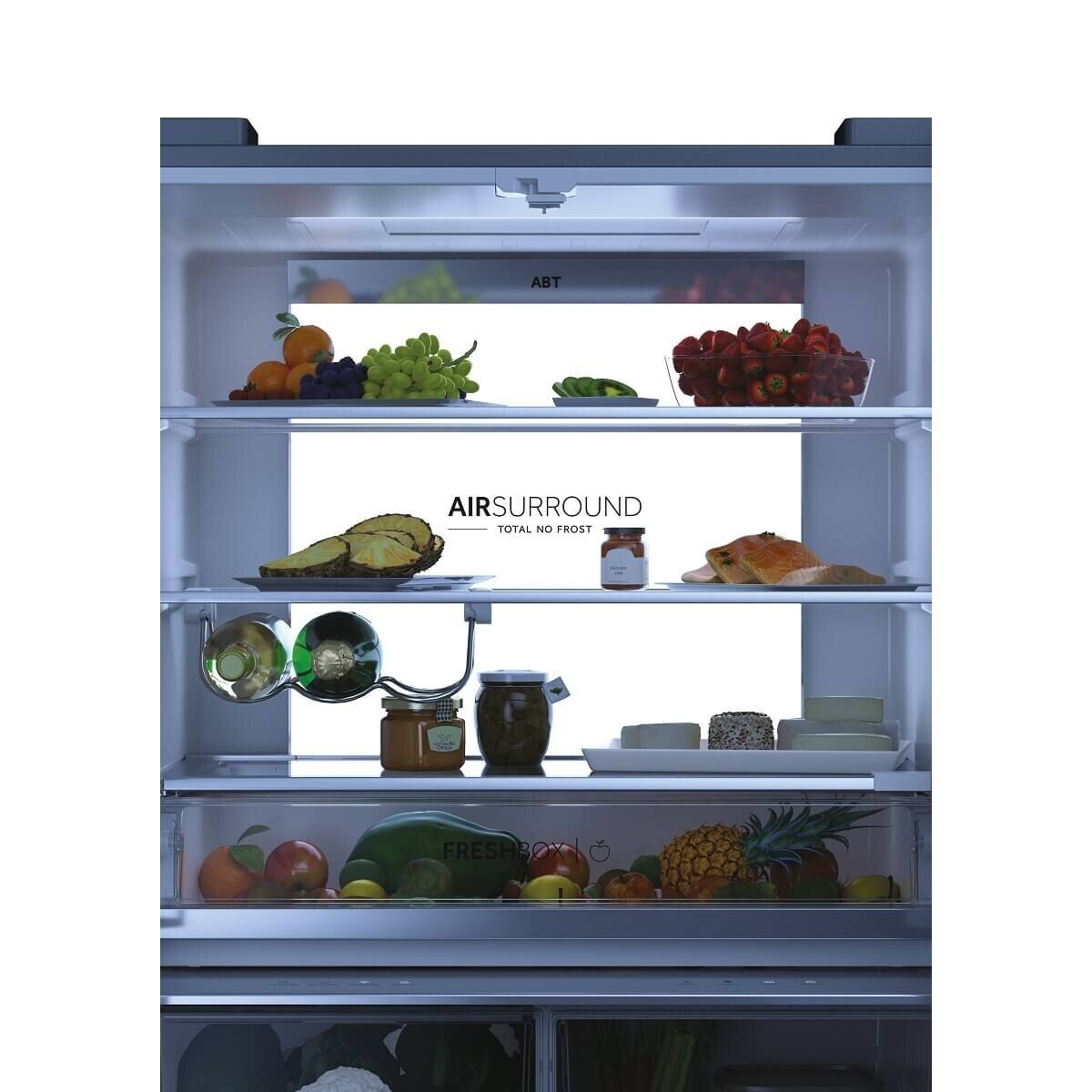 Beznámrazová technológia chladeniaTotal No Frost Air zaručuje homogénnu teplotu a vlhkosť na každej polici vďaka jemnému prúdeniu vzduchu vychádzajúcemu z bočných vývodov vo vnútri chladničky, ktorý nikdy priamo nenaráža na potraviny, čo umožňuje udržiavať ich čerstvé a zdravé od prvého dňa. |