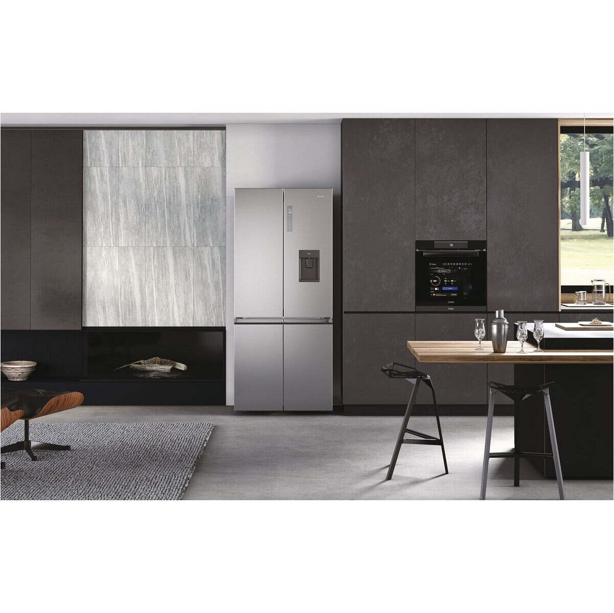 Americká chladnička Haier HCW7819EHMPXXL štvordverová americká chladničkaHaier HCW7819EWMP v inovatívnom prevedení Platinum Inox vás na prvý pohľad osloví praktickým dávkovačom vody a ľadu, s ktorým budete mať vždy čerstvú vodu alebo ľad k dispozícii. Chladnička ponúka dostatok priestoru na uloženie všetkých vašich potravín a modernej technológie na zachovanie ich čerstvosti. Vnútorný priestor o celkovom čistom objeme 536 l (chladiaca časť 359 l, mraziaca časť 177 l) je prakticky členený, v chladiacej časti nabehnete 3+1 sklenenej police, 5 priehradiek vo dverách, Humidity Zone a My Zone, držiak na vína a na vajíčka , v mrazničke 2 + 3 zásuvky a automatický výrobník ľadu. To všetko v úspornej energetickej triede E, s hlučnosťou 37 dB(A). |