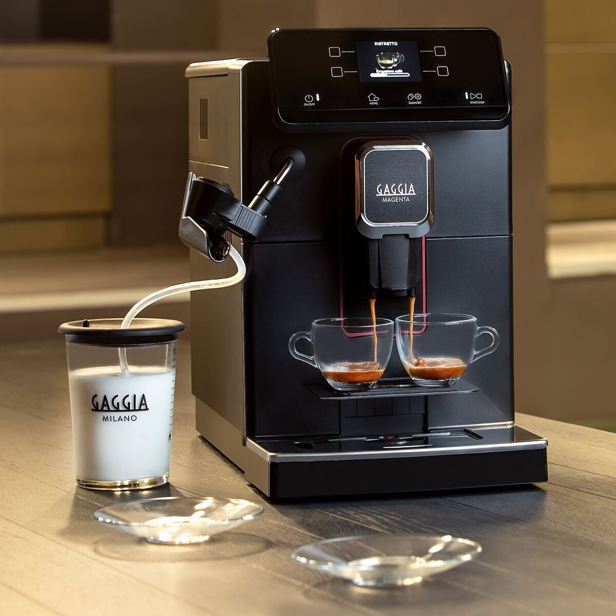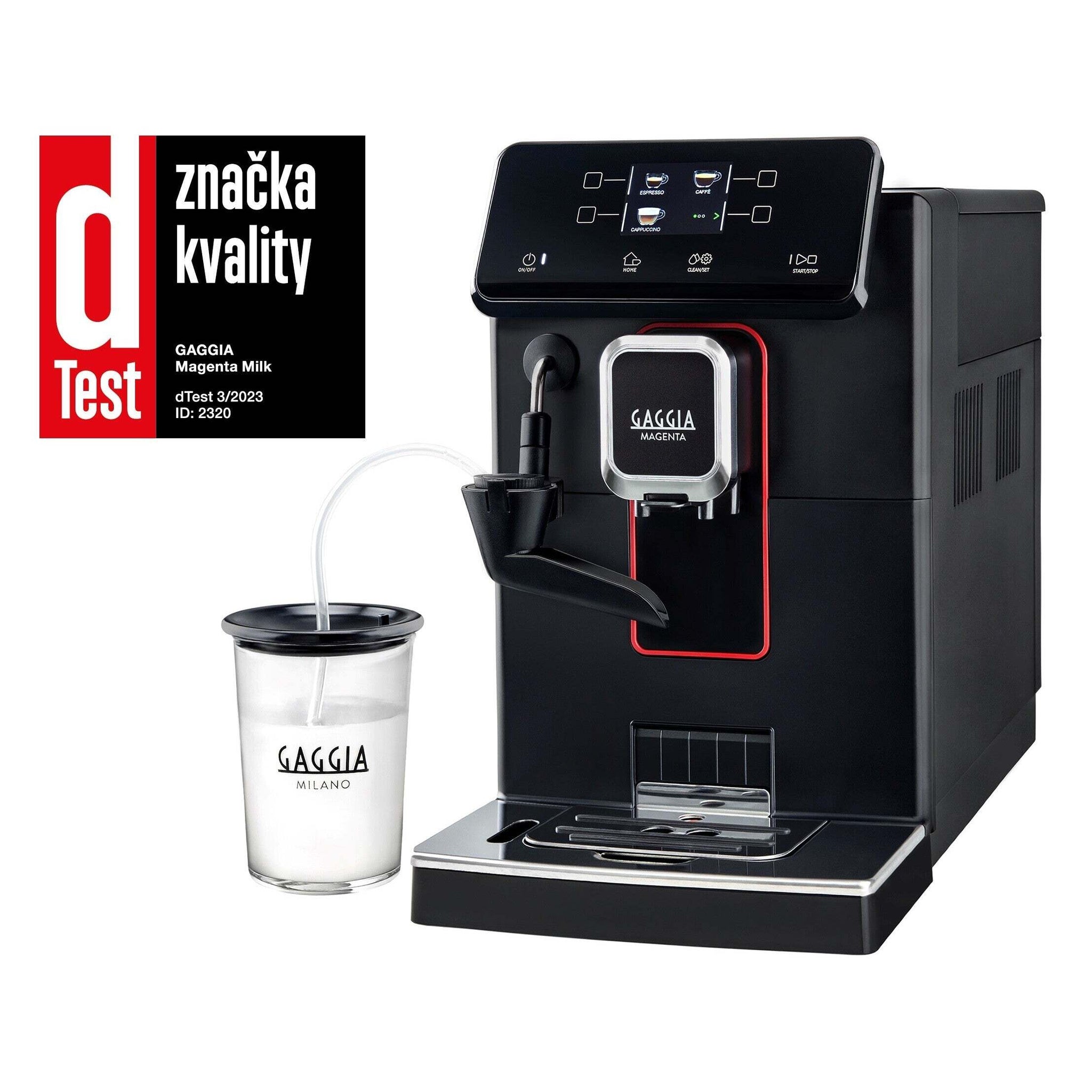 Automatické espresso Gaggia Magenta MilkGaggia Magneta Milk je domáci kávovar na prípravu espressa a vďaka parnej tryske si hravo poradí aj s mliečnymi nápojmi. Technológia Gaggia Adapting System vykoná predsparenie a garantuje ten najkvalitnejší pôžitok z vašej kávy.