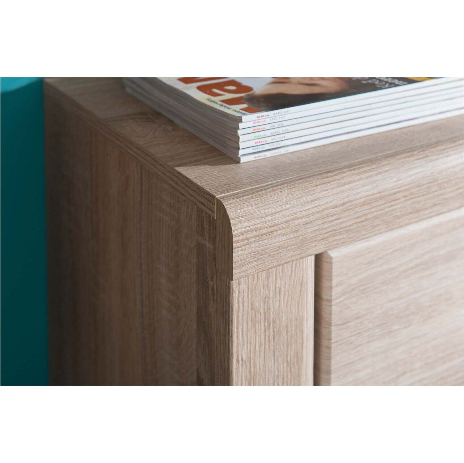 Zásuvky sú opatrené spomaľovacím pojazdom, ktorý zabraňuje hlučnému dovretiu. Predná plocha je opatrená vodorovnými úchytkami, ktoré nielenže oživujú dekor prednej strany dvierok, ale zabezpečia pohodlné otváranie.
