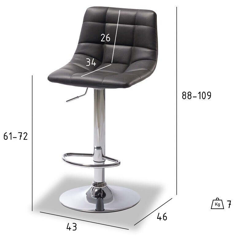 Barová stolička FuenteBarové stoličky Fuente sa hodia k barovým stolíkom a pultom v moderných interiéroch domácností, barov, kaviarní či reštaurácií. Stolička je vyrobená z kovu a v kombinácii s čiernou eko kožou sedadla tvorí ideálny dizajnový kúsok. Konštrukcia a použité materiály zaistia dostatočnú stabilitu a nosnosť až do 100 kg. |