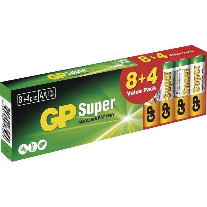 Batérie Alkaline GP Super B1320T, AA, 8+4ksJedná sa o tužkové batérie s napätím 1,5 V. Batérie Alkaline sa radia medzi jednorázové batérie GP typu AA a vyznačujú sa svojou vysokou kvalitou spracovania a materiálov. Sú navrhnuté na použitie u všetkej prenosnej elektroniky v domácnosti. Pýšia sa technológiou proti pretečeniu a dlhou životnosťou. V balení nájdete 12 kusov týchto batérií. |
