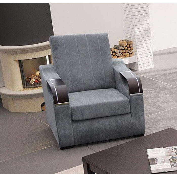 Kreslo Bergamo je vyrobené z veľmi kvalitných materiálov a má veľmi pevnú konštrukciu, ktorá bude odolávať počas dlhých rokov jeho používania. Kreslo Bergamo je navrhnuté tak, aby pôsobilo maximálnym dojmom luxusu a pohodlia, a presne také toto kreslo je.Kreslo Bergamo je neuveriteľne pohodlné a stane sa vaším dobrým priateľom počas dlhých neskorých večerov s vašou obľúbenou knihou alebo pri sledovaní vášho obľúbeného programu v televízii. Jeho ojedinelý dizajn dotvárajú drevené podrúčky a látkové prevedenie, vďaka ktorému získa vaša obývacia izba nádych jemnosti a dokonalosti.