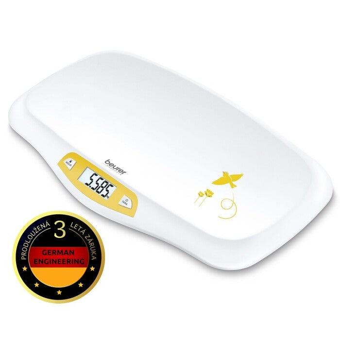 Detská váha Beurer BY80 vám umožní sledovať aj malú zmenu hmotnosti vášho bábätka. Vďaka dovažovacej funkcii TARA jednoducho odčítate hmotnosť plienky a nemusíte pokladať dieťa na studený povrch, ale presne ho zvážite aj v uteráku alebo na iné mäkkej podložke. Funkcia HOLD zaznamená hmotnosť aj u nepokojných detí. Klenutý povrch sa ľahko čistí a dobre čitateľný LCD displej zobrazuje číslice o 23 mm. Vďaka pamäti budete moc presne porovnať zmenu hmotnosti od posledného váženia. Praktická dojčenská váha Beurer BY 80 s rozmermi 550 × 310 × 53 mm má maximálne zaťaženie 20 kg a rozlíšenie 5 g. Napájaná je AA batériou, ktorá je obsiahnutá v balení.