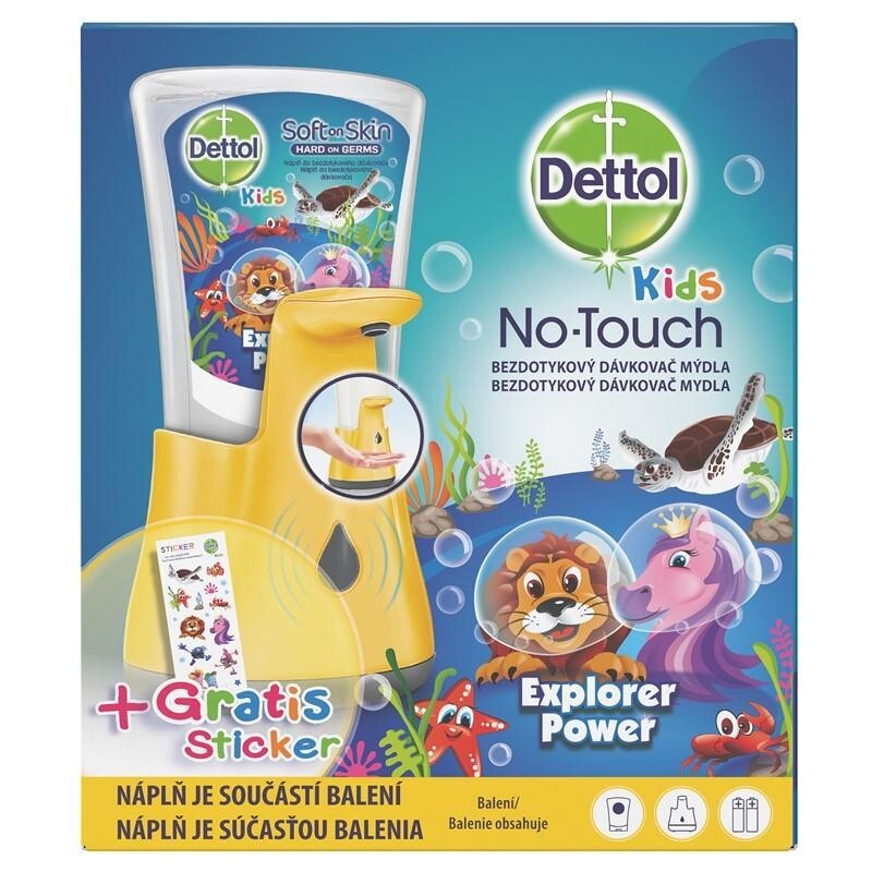 Dettol A000012351 Automatický dávkovač mydla ZOO Kids, 250mlBezdotykový dávkovač mydla Dettol si obľúbi každé dieťa. Pri tomto dávkovači nehrozí zachytávanie baktérií na pumpičke, a to vďaka technológii, ktorá bez dotyku uvoľní potrebné množstvo mydla priamo na dlaň. |