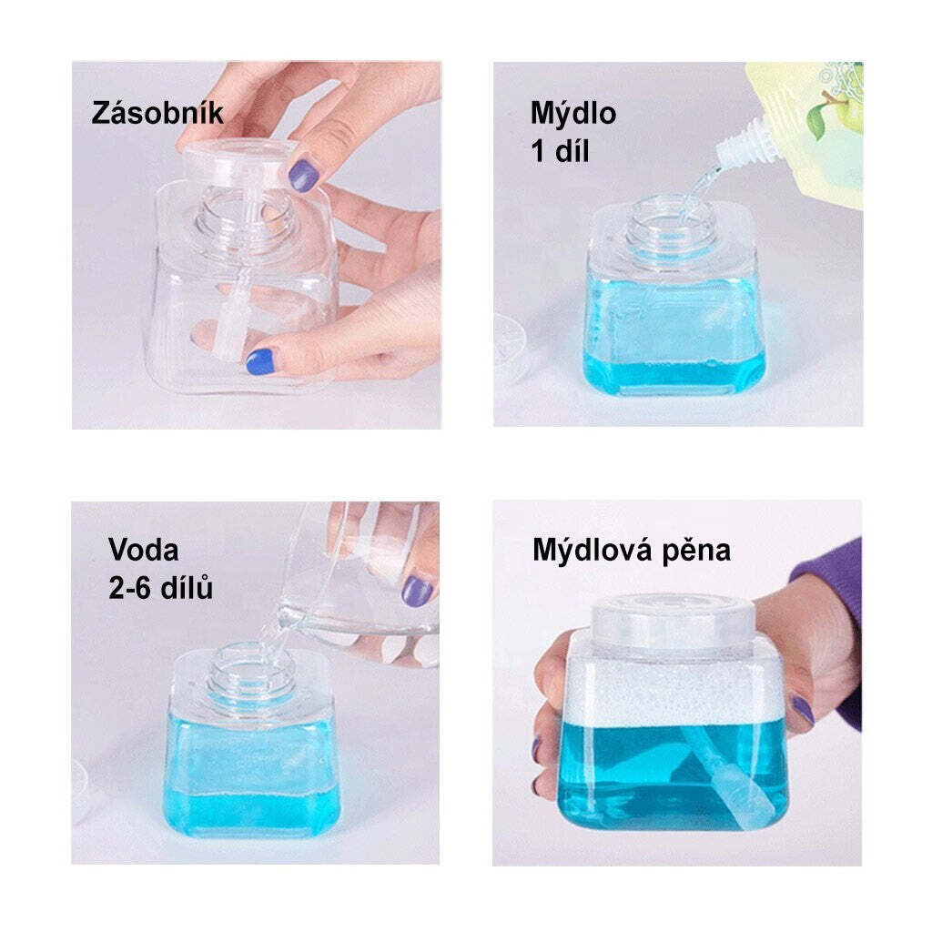 Pena v priebehu pár sekúndPenu dávkovač jednoducho vyrobí za vás, vy len do zásobníka s objemom 350 ml nalejete mydlo a zriedite ho v pomere asi 1: 3 dielom vody. Vďaka jeho priehľadnosti navyše uvidíte, koľko vám vo vnútri ešte zostáva mydla, rýchlo ho včas doplníte a nikdy vás nezaskočí prázdny zásobník. |