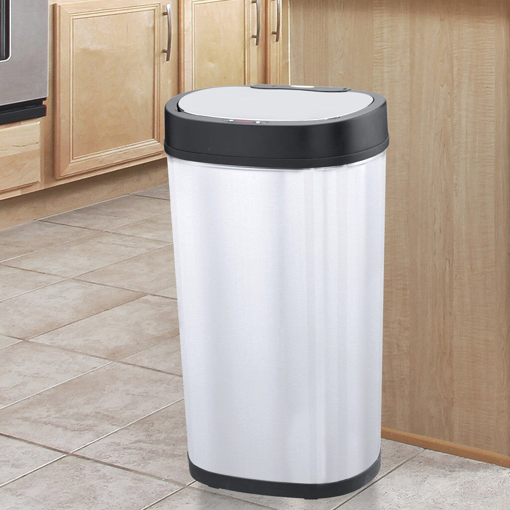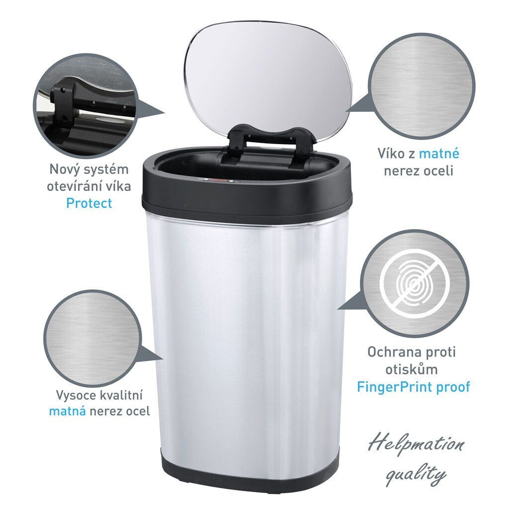 Úsporná prevádzkaAutomatické otváranie koša je veľmi jednoduché a hygienické. Stačí iba priblížiť ruku 25 cm nad infračervený senzor a veko sa samo behom 0,5 sekundy otvorí, po vhodení odpadu sa automaticky za 3 sekundy zase samo zavrie. Veko je vybavené manuálnym ovládaním pre potrebu dlhšieho otvorenia a v zadnej časti je umiestnený hlavný vypínač pre možnosť úplného vypnutia. Prevádzku zaisťujú 3 kusy batérií typu LR20/D. Pri použití kvalitných alkalických batérií otvoria veko až 10 000krát.