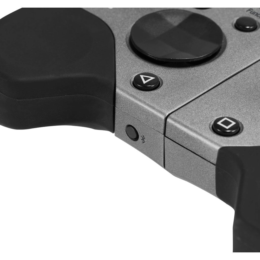 Bezdrôtovo aj s káblomGamepad s počítačom, notebookom alebo mobilom bezpečne prepojíte bezdrôtovo cez Bluetooth a to pomocou pripojenia USB kľúča s prenosovou vzdialenosťou 7 až 10 metrov. Prípadne máte k dispozícii aj možnosť klasického káblového pripojenia s micro USB. To zároveň zaisťuje aj možnosť nabíjania. Plne nabité bude zariadenie za jednu hodinu. Výdrž je osem hodín. Pre pohodlné pripojenie vášho mobilného telefónu je súčasťou zariadenia praktický držiak o veľkosti 165 mm a hrúbke 9 mm. |