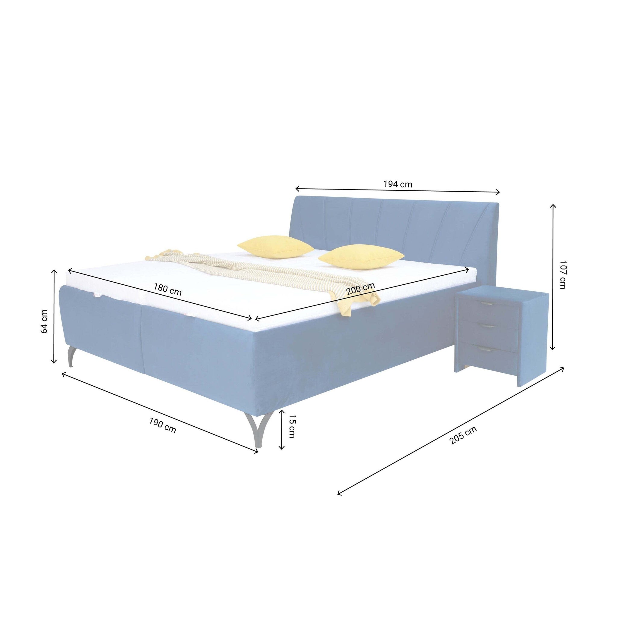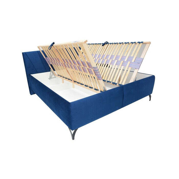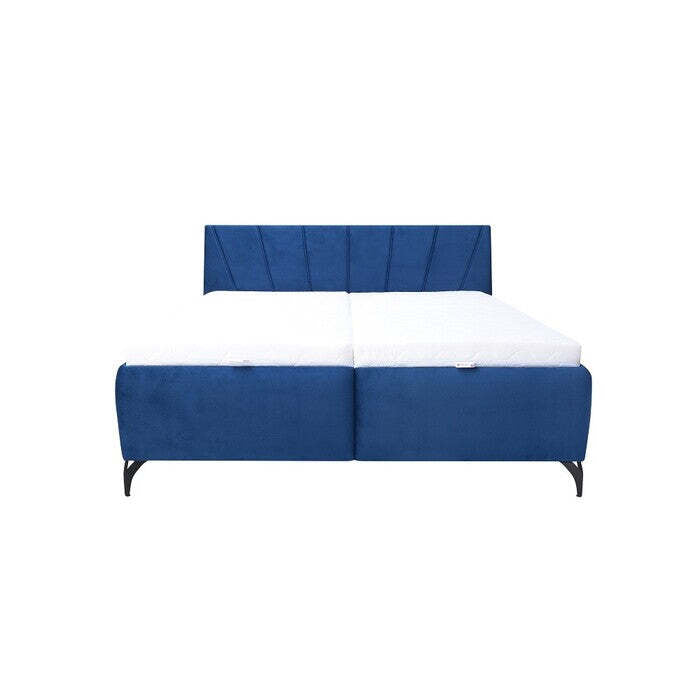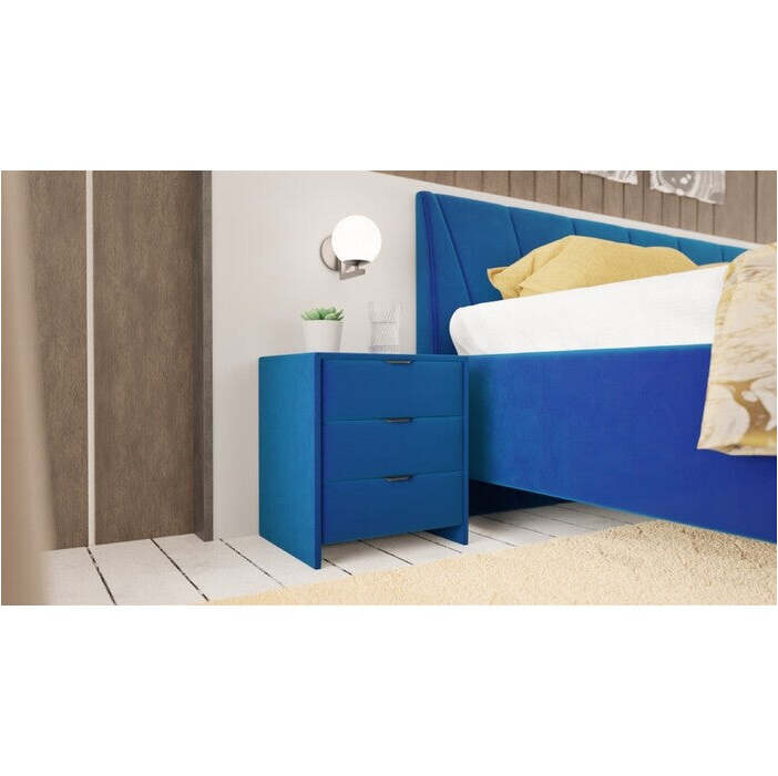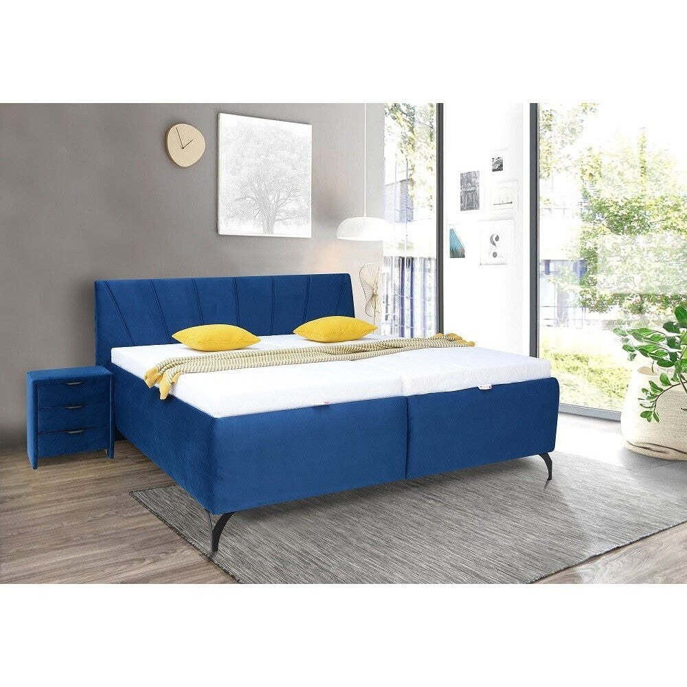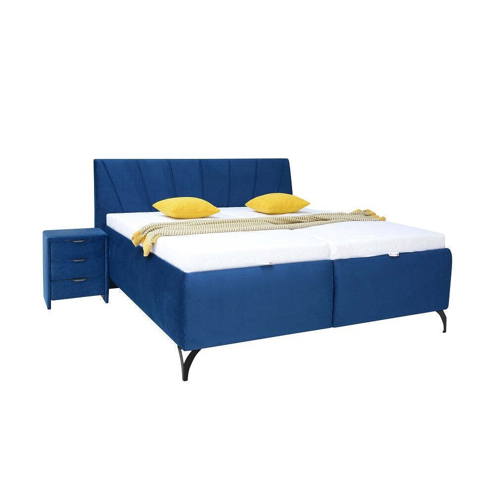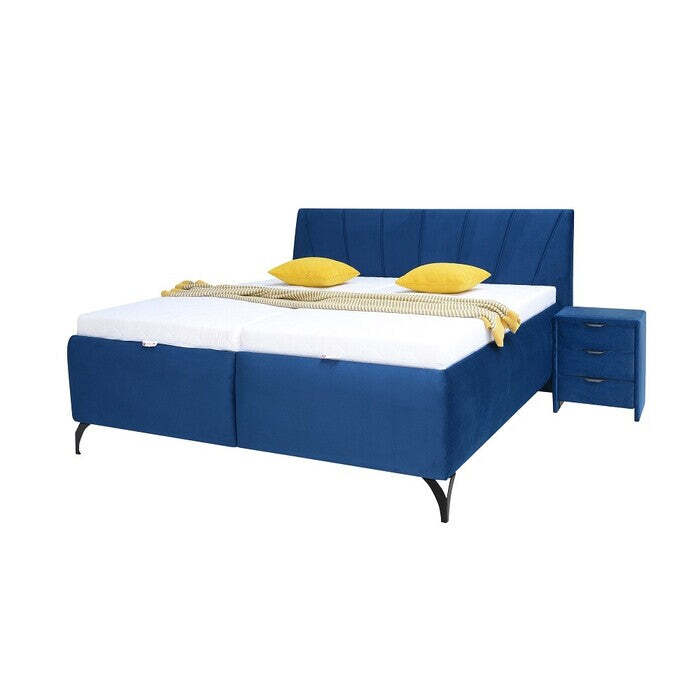 Čalúnená manželská posteľ FranzManželská posteľ Franz je pre všetkých, ktorí milujú kvalitný spánok a neboja sa ozvláštniť svoj interiér novými farbami. Táto čalúnená posteľ vás na prvý pohľad zaujme výraznou modrou látkou, ktorá nielen dobre vyzerá, ale na dotyk pripomína zamat. Rozmery matraca 180x200 cm vám poskytnú dostatok miesta pre vašu chvíľku odpočinku. Pre svoj spánok môžete zvoliť buď stredne tvrdú, alebo tvrdšiu stranu matraca. Poťah matraca je snímateľný a prateľný.V prípade, že sa budete chcieť oprieť napríklad pri sledovaní televízie alebo čítaní, vám zadné čelo postele poskytne riadnu oporu.Elegantným prvkom sú aj vysoké a pevné kovové nohy, pod ktoré sa zmestí väčšina robotických vysávačov. Okrem iného nájdete pod roštami postele objemný úložný priestor, ktorý je nedoceniteľný na uschovanie lôžkovín či nepotrebných vecí. K posteli si môžete dokúpiť nočný stolík Franz