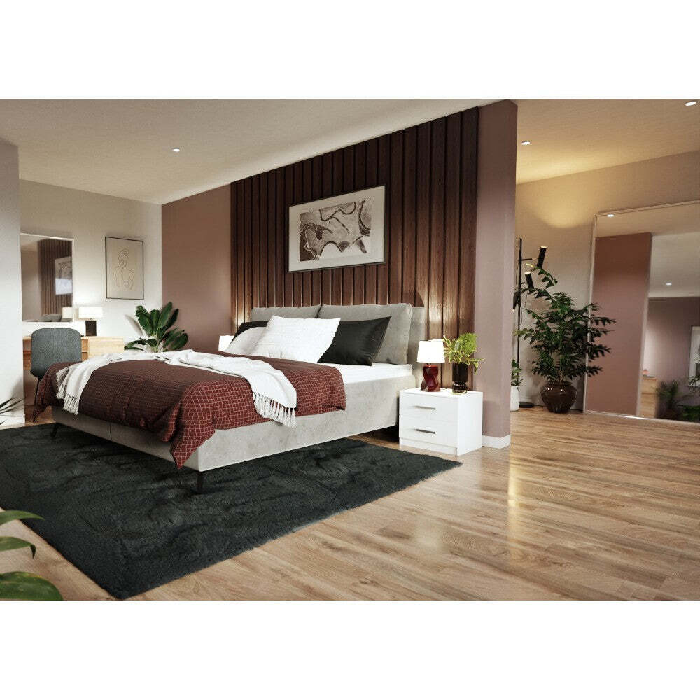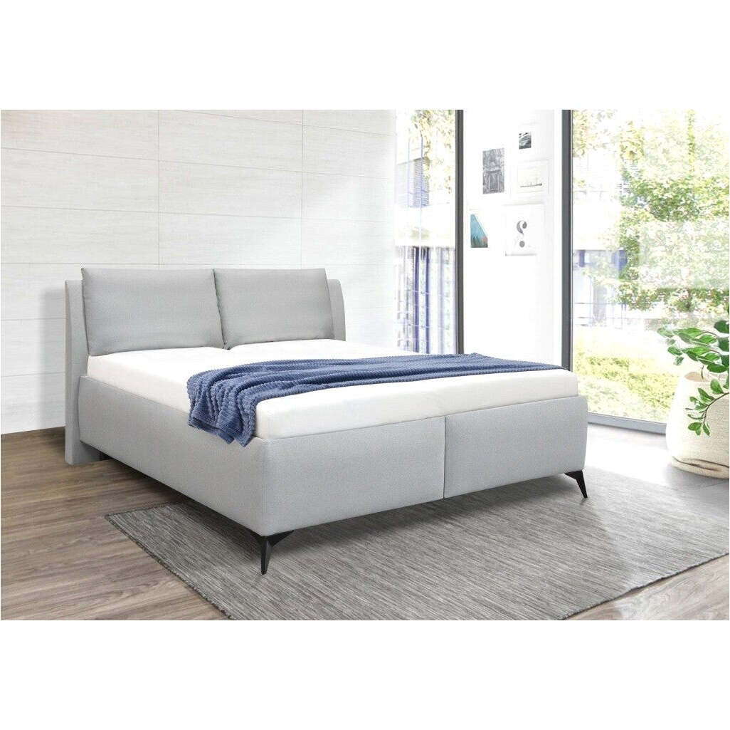 Čalúnená posteľ Tessa - garancia pohodlia a elegancieManželská posteľ Tessa vám zaistí vysoký komfort pri odpočinku a ničím nerušený spánok. Zároveň sa stane stredobodom každej spálne. Výrazným prvkom je vysoké čalúnené čelo v podobe dvoch oporných vankúšov, do ktorých sa pohodlne uložíte pri sledovaní televízie alebo čítaní. Súčasťou postele je veľkorysý úložný priestor, ktorý je nenahraditeľný napr. na uschovanie lôžkovín. Posteľ je potiahnutá svetlosivou látkou, ktorá vám ponechá voľnú ruku pri výbere ďalšieho nábytku a doplnkov do spálne. Táto dvojlôžková posteľ je vyhotovená s rozmermi plochy na spanie 180x200 cm a stojí na vysokých pevných kovových nožičkách - zmestí sa pod ňu väčšina robotických vysávačov. Celková konštrukcia je pevná, posteľ má nadštandardnú nosnosť 300 kg. Posteľ sa dodáva vrátane lamelových roštov, na ktoré si môžete uložiť matrac podľa vašich predstáv. Odporúčame si vybrať zo širokého sortimentu matracov 180x200 cm alebo 2 kusov matracov rozmeru 90x200 cm. Komfort spania a životnosť matraca môžete zvýšiť pomocou toppera. |