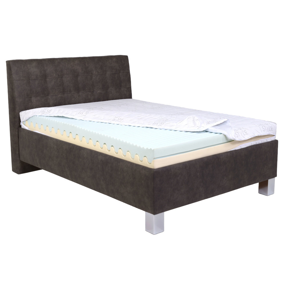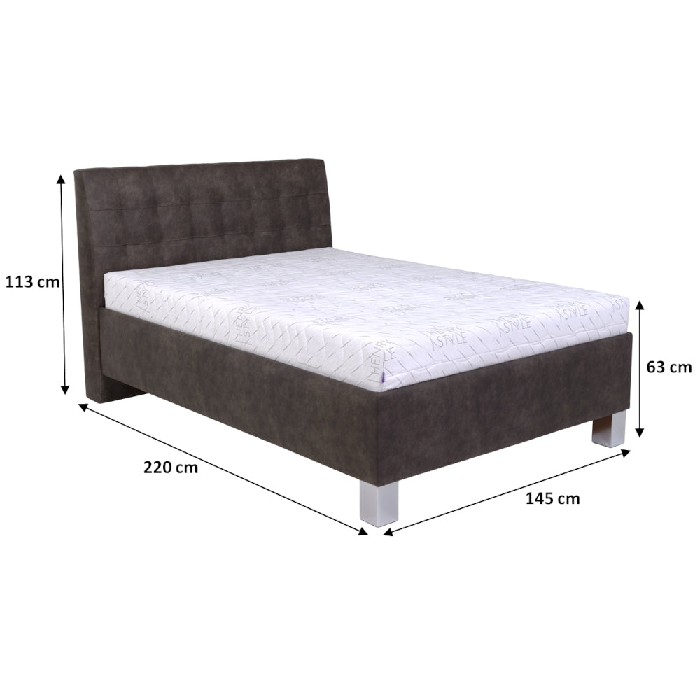 Čalúnená posteľ Victoria - definícia komfortu a kvalitného spánkuVýber dobrej postele nie je v dnešnej dobe jednoduchá záležitosť. Aby plnila svoj účel čo najlepšie, je vhodné hľadieť v prvom rade na výber materiálov. O obstaraní vysnívanej postele často rozhodujú aj praktické funkcie a komponenty. A v neposlednom rade by mala byť posteľ prinajmenšom ľúbivá, aby ste do nej vždy radi ľahli. Nepochybne všetky menované faktory nadmieru spĺňa čalúnená posteľ Victoria z našej novej prémiovej značky Henry Style . Toto luxusné lôžko s rozmermi 140x200 cm si nájde miesto v každej spálni vďaka neutrálnej sivohnedej poťahovej látke. Výhoda čalúnených postelí spočíva v tom, že pri ich konštrukcii potiahnutej tkaninou či eko kožou nehrozí poranenie o tvrdú hranu postele. To im zároveň dodáva mäkkosť a jemné rysy. Posteľ Victoria má čalúnený ako korpus, tak aj dominantné čelo, ktoré vďaka dokonalému preští robia nábytok elegantný a moderný . Celkový dizajn potom dopĺňajú nôžky z masívneho bukového dreva s ideálnou výškou 15 cm na jednoduchšie upratovanie pod posteľou, napríklad s pomocou robotického vysávača. Výška ložnej plochy je úctyhodných 63 cm , čo vám umožní jednoduchšie uliehanie a vstávanie. Fotografia je ilustračná. Posteľ sa dodáva bez dekoračných vankúšikov a plédu. K posteli je možné dokúpiť praktický doplnok v podobe taburetu .
