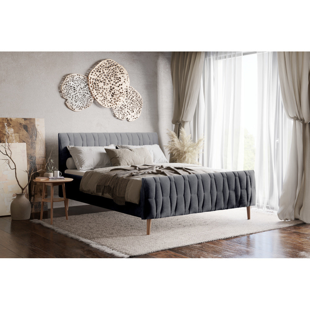 Trendová čalúnená posteľ AkselPosteľ Aksel je ukážkou moderného a elegantného designu. Výrazným prvkom je vysoké mäkké polstrované čelo, o ktoré sa pohodlne opriete pri sledovaní televízie alebo čítaní, a chráni vás tak od chladných stien. Posteľ je potiahnutá sivou látkou, ktorá vám ponechá voľnú ruku pri výbere ďalšieho nábytku a doplnkov do spálne. Má jemnú štruktúru, ale zároveň vyniká silnou odolnosťou voči opotrebovaniu. Dvojlôžková posteľ Aksel je prevedená s rozmermi ložnej plochy 180x200 cm a stojí na vysokých drevených nôžkach, ktoré vám umožnia ľahké upratovanie pod posteľou. Celková konštrukcia je pevná, posteľ znesie nosnosť 200 kg a zaručuje posteli dlhú životnosť. Súčasťou postele je drevený rošt. Matrac nie je súčasťou postele, môžete si vybrať zo širokého sortimentu matracov 180x200 cm alebo 2 kusov matracov rozmeru 90x200 cm podľa vášho vkusu a nárokov. Naomfort spanie a životnosť matraca môžete zvýšiť pomocou toppera. |