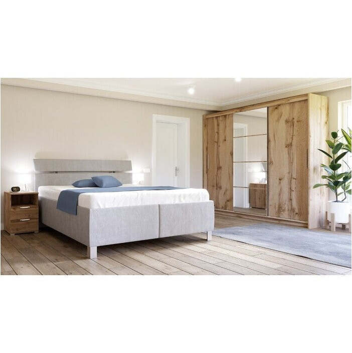 Čalúnená posteľ Anne - skvelá voľba do každej spálneVýber dobrej postele nie je v dnešnej dobe jednoduchá záležitosť. Aby plnila svoj účel čo najlepšie, je vhodné pozerať v prvom rade na výber materiálov. O kúpe vysnívanej postele často rozhodujú aj praktické funkcie a komponenty. A v neposlednom rade by mala byť posteľ prinajmenšom pekná, aby ste do nej vždy radi líhali. Nepochybne všetky menované faktory nadmieru spĺňa práve čalúnená posteľ Anne z našej novej prémiovej značky Henry Style. Táto luxusná dvojposteľ s rozmermi 180x200 cm si nájde miesto v každej spálni vďaka neutrálnej šedej poťahovej látke. Výhoda čalúnených postelí spočíva v tom, že u ich konštrukcie čalúnenej tkaninou nehrozí poranenie o tvrdú hranu postele. To im zároveň dodáva mäkkosť a jemné rysy. Manželská posteľ Anne má čalúnený ako korpus, tak aj štýlové vysoké čalúnené čelo. Celkový dizajn potom dopĺňajú masívne chrómové nožičky, ktoré disponujú dostatočnou výškou na to, aby pod nimi mohol prejsť napríklad robotický vysávač. Výška plochy na spanie je 69 cm, čo vám umožní jednoduchšie líhanie a vstávanie. Fotografia je ilustračná. Posteľ sa dodáva bez dekoračných vankúšov a plédu.