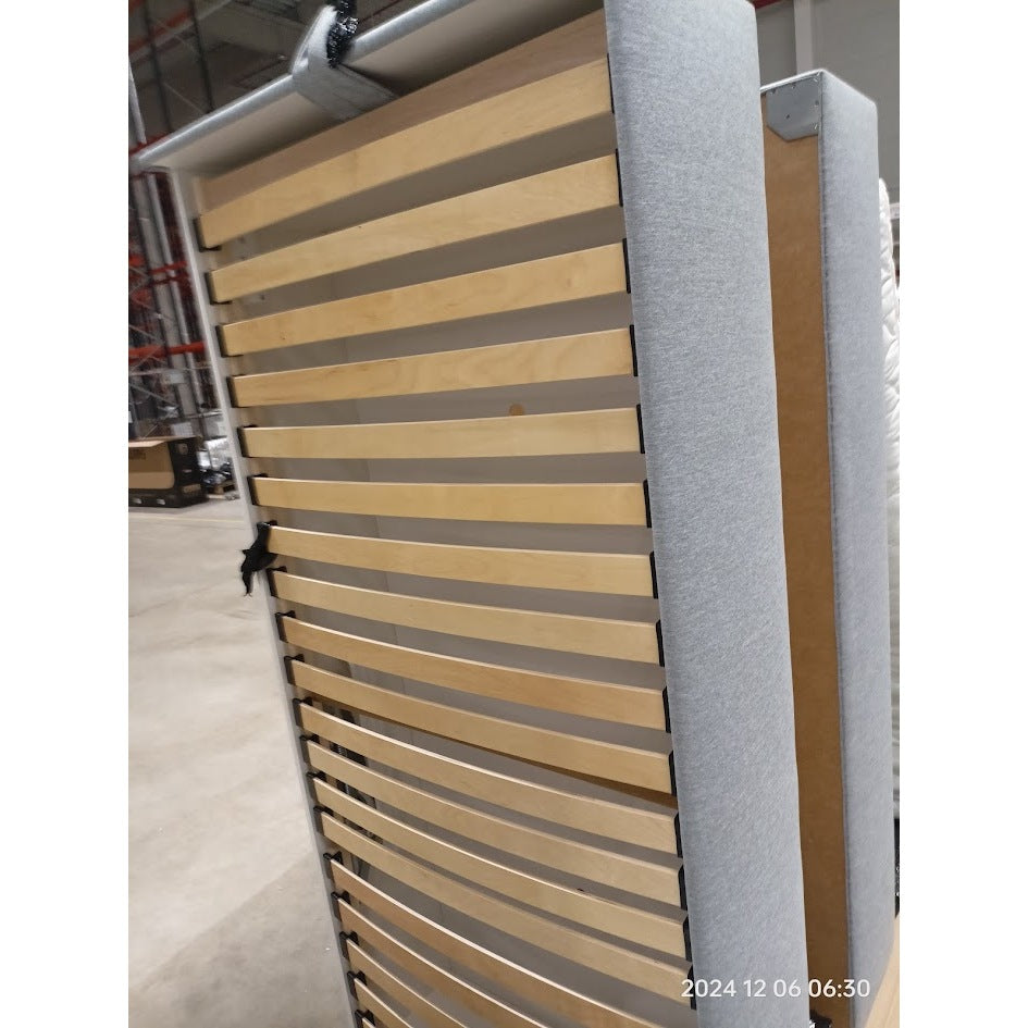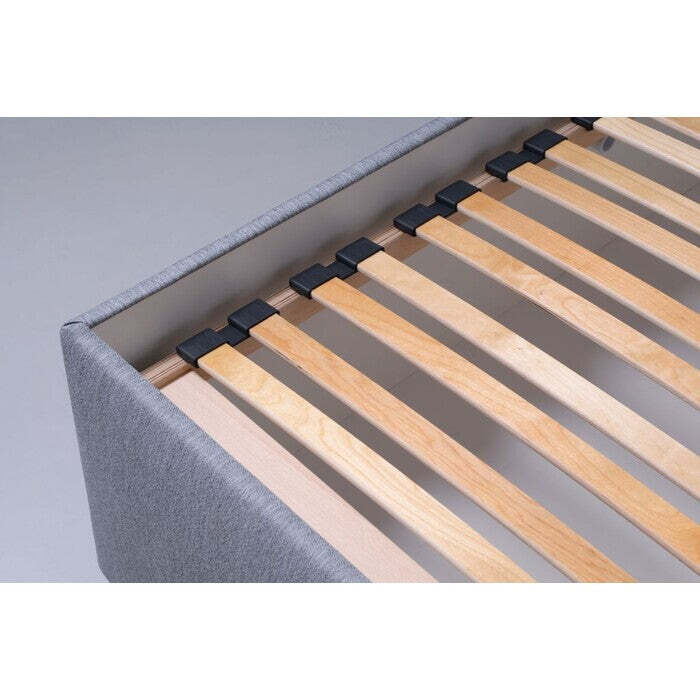 Detail poťahovej látkyNa výrobu postele Anne boli použité kvalitné materiály, ktoré spĺňajú kritériá celoeurópskych noriem vrátane normy OEKO-TEX. Posteľ 180x200 Anne je čalúnená kvalitnou látkou Gomez. Vďaka neutrálnemu sivému dekoru sa skvele hodí do každej spálne. Pod látkou sa nachádza čalúnnická výplň, ktorá izoluje hrany drevenej konštrukcie. Korpus postele tak pôsobí mäkko a príjemne. Elegantný vzhľad postele Anne dotvára vysoké čalúnené čelo.
