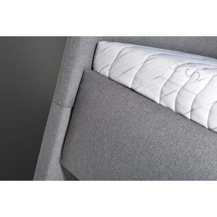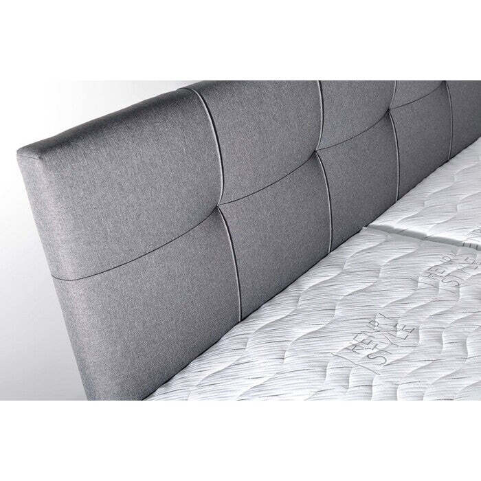 Detail poťahovej látkyNa výrobu postele Mary boli použité kvalitné materiály, ktoré spĺňajú kritériá celoeurópskych noriem vrátane normy OEKO-TEX. Posteľ Mary je čalúnená kvalitnou látkou Paris. Vďaka neutrálnemu sivému dekoru sa skvele hodí do každej spálne. Pod látkou sa nachádza čalúnnická výplň, ktorá izoluje hrany drevenej konštrukcie. Korpus postele tak pôsobí mäkko a príjemne. Elegantný vzhľad postele Mary dotvára dômyselné prešitie masívneho čela.