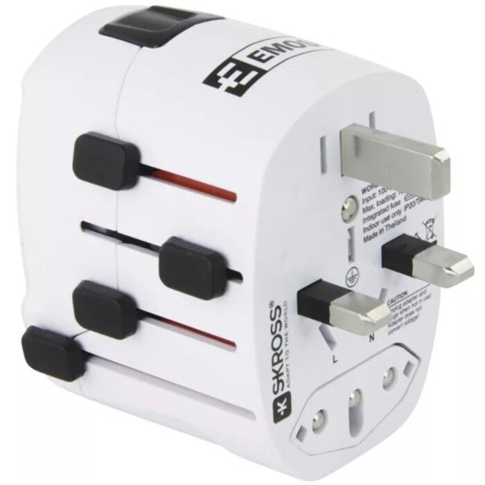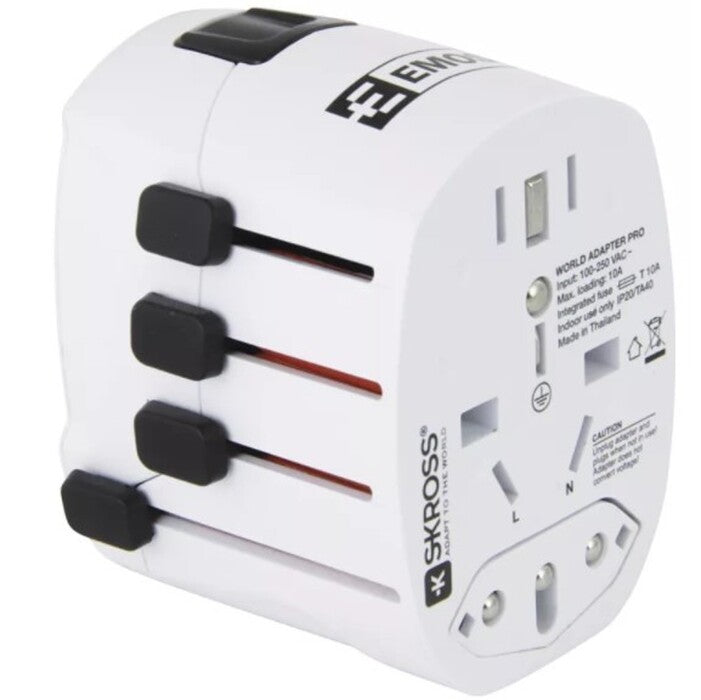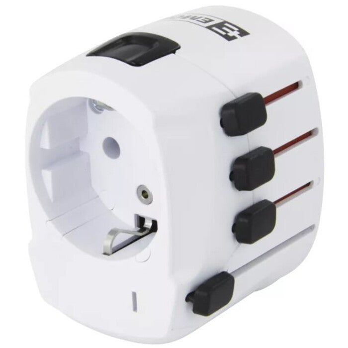 Cestovný univerzálny adaptér do zahraničiaS najmenším cestovným plne integrovaným 2pólovým a 3pólovým adaptérom WorldPro s plnou ochranou od značky Emos v jednoduchej bielej farbe môžete pohodlne a bez akejkoľvek zmeny používať vaše bežné prístroje v 150 krajinách sveta. Adaptér vie prepojiť spotrebiče so všetkými 3pólovými uzemnenými zásuvkami ochrannej triedy I a II a to v krajinách ako je Amerika, Ázia, Austrália, Nový Zéland, Čína, Afrika, Stredný Východ, GB, Švajčiarsko, Taliansko, HK, India atď. |