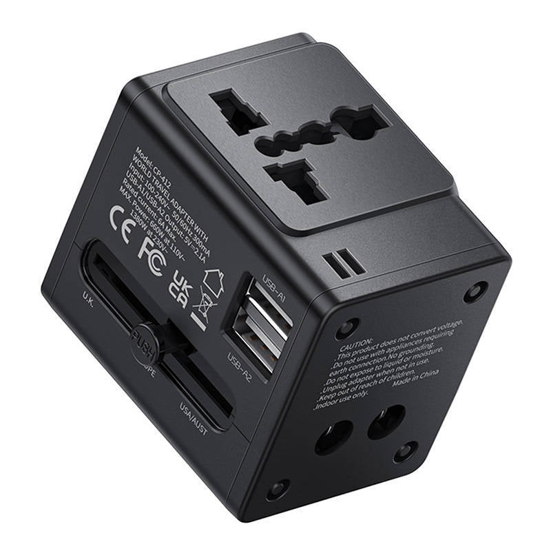 Viac zástrčiekS adaptérom môžete jednoducho precestovať svet. Je to totiž vybavený štyrmi rôznymi zástrčkami so štandardmi AU, UK, US/CN a EU. To z neho robí skvelé zariadenie do štátov ako je v Austrália, Veľkej Británie, USA, Kanada a samozrejme väčšina krajín Európy. Vedľa zástrčiek si zdierky si tiež môžete pripojiť dva USB-A konektory a nabíjať tak viac zariadení súčasne. |
