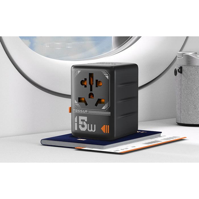 Štyri zástrčky a USBCestovný adaptér TESSAN 15W (2500W) je malý, skladný a zároveň má všetky zástrčky vždy po ruke. Stačí len postrčiť páčku a vytiahnuť ten príslušný. Môžete ho pripojiť alebo do neho zapojiť štyri štandardné konektory pre EU, UK, AU a US. Okrem toho disponuje aj dvoma USB-A konektormi a jedným USB-C, pre jednoduchšie pripojenie vašich mobilných prístrojov. |