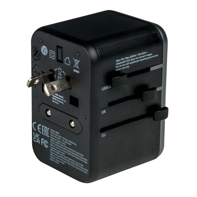 Pri cestovaní po svete sa vám často môže stať, že štát od štátu musíte meniť adaptéry. Tento praktický univerzálny prístroj vás tejto povinnosti hladko zbaví. Je totiž opatrený veľkým množstvom zástrčiek, ktoré využijete až v 180 krajinách sveta. Ide o zástrčky typu A, typu B, typu C, typu E, typu F, typu G, typu I, typu J, typu L, typu N. Zároveň podporuje nasledujúce typy zásuviek A, B, C, D, E, F, G, H, I, J, K, L, M, N a O. Na vstupe sa zase nachádzajú tri USB-A, dva USB-C s podporou Power Delivery a Quick Charge. Oceníte ho pri elektronických zariadeniach do 2500 W pri napätí 250 V a 1000 W pri napätí 100 V |