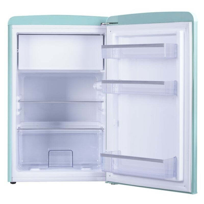 Kombinovaná chladničkaRetro chladnička s objemom 95 litrov je vybavená jednou odnímateľnou policou, ktorá vám pomôže prehľadne uskladniť potraviny a nechýba ani zásuvka na zeleninu a ovocie. Dverový priestor je vybavený 3 priehradkami. Spodná polička je ideálne miesto na schladenie obľúbeného vína či iného nápoja. Mraznička umiestnená v hornej časti ponúka celkovú kapacitu 13 litrov. |