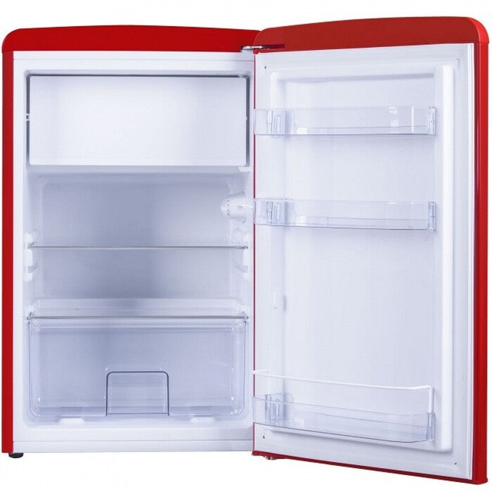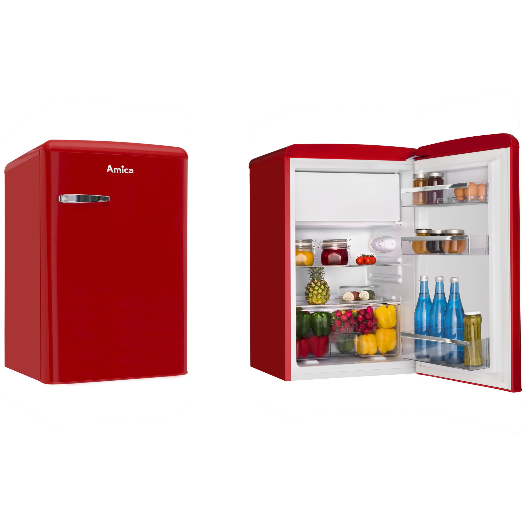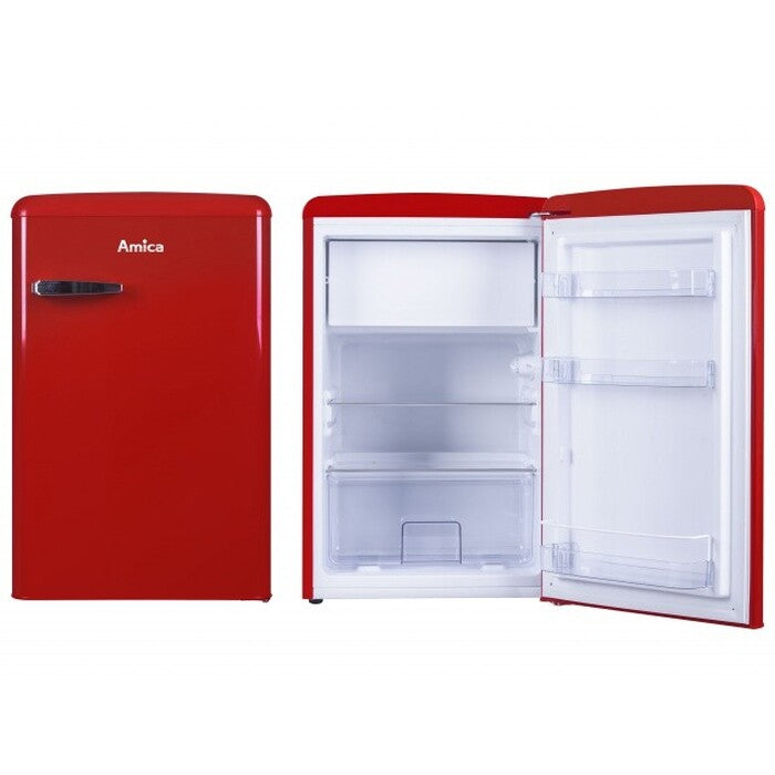 Voľne stojaca chladnička s mrazničkou v červenom prevedení a praktickým madlom Amica VT 862 AR sa svojou veľkosťou perfektne hodí do študentského bytu, kancelárie, hotelovej izby alebo na chatu. Jej celkový objem je 108 litrov a disponuje mechanickým ovládaním termostatu. Hoci sa jedná o výkonnú kombinovanú chladničku, jej tichý chod iba 37 dB zabezpečí, že vás nebude nikdy rušiť.
