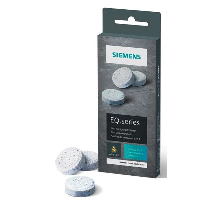 Čistiace tabletyDoplnkové príslušenstvo Siemens TZ80001A predstavuje čistiace tablety, ktoré vám pomôžu zaistiť stopercentnú funkčnosť vášho kávovaru Siemens. Balenie obsahuje 10 tabliet na čistenie 2v1, ktoré sa postarajú o lepšiu arómu a predĺžia životnosť spotrebiča. Príslušenstvo je určené k prístrojom Siemens na prípravu nápojov. Kľúčové vlastnosti: