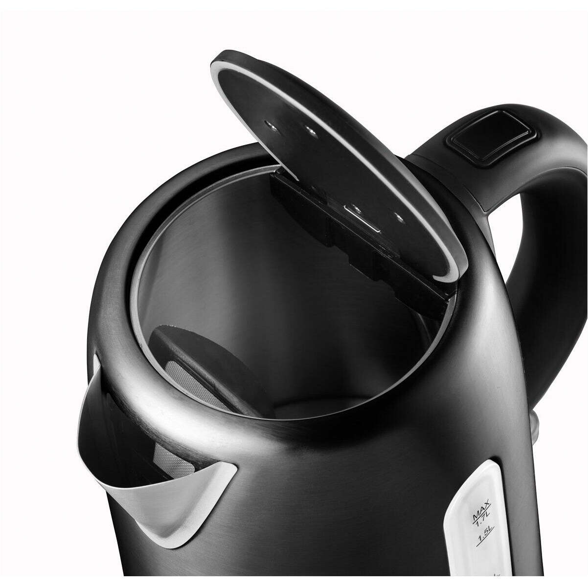 Veľký objemKanvica disponuje veľkým objemom 1,7 l, takže v nej pohodlne uvaríte čaj alebo kávu pre celú rodinu. Množstvo vody je možné ľahko kontrolovať pomocou veľkého vodoznaku. Vďaka optimálne tvarovanému ústiu kanvice je jej plnenie aj nalievanie veľmi jednoduché. Veko kanvice možno ľahko otvoriť stlačením jediného tlačidla na držadle kanvice. S praktickou kontrolkou prevádzky budete presne vedieť, kedy je voda uvarená. |