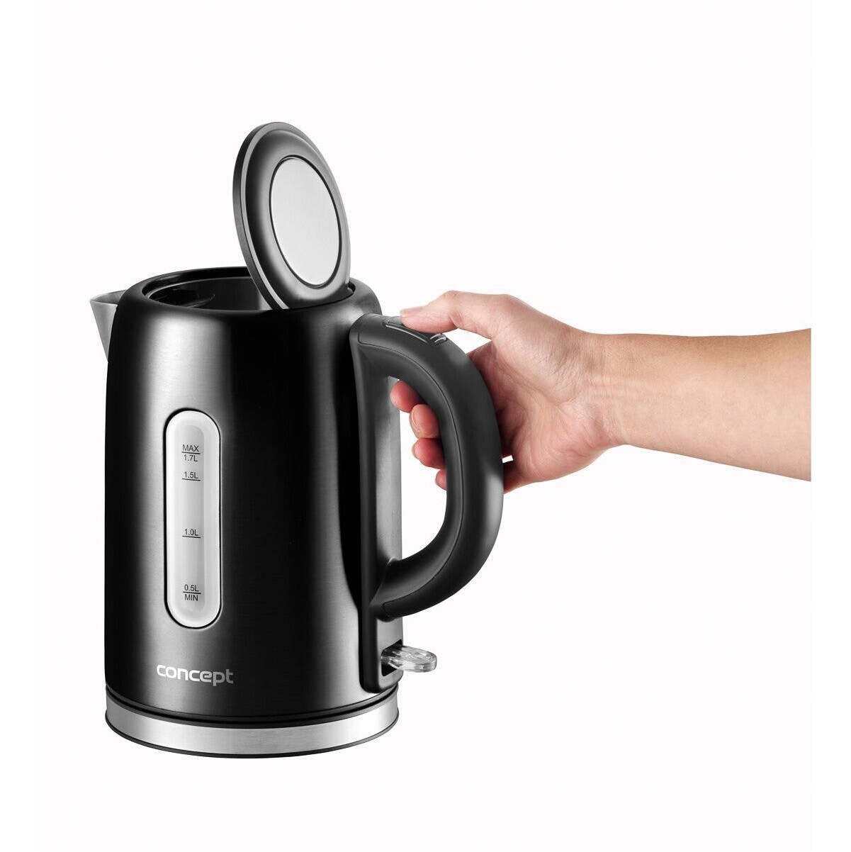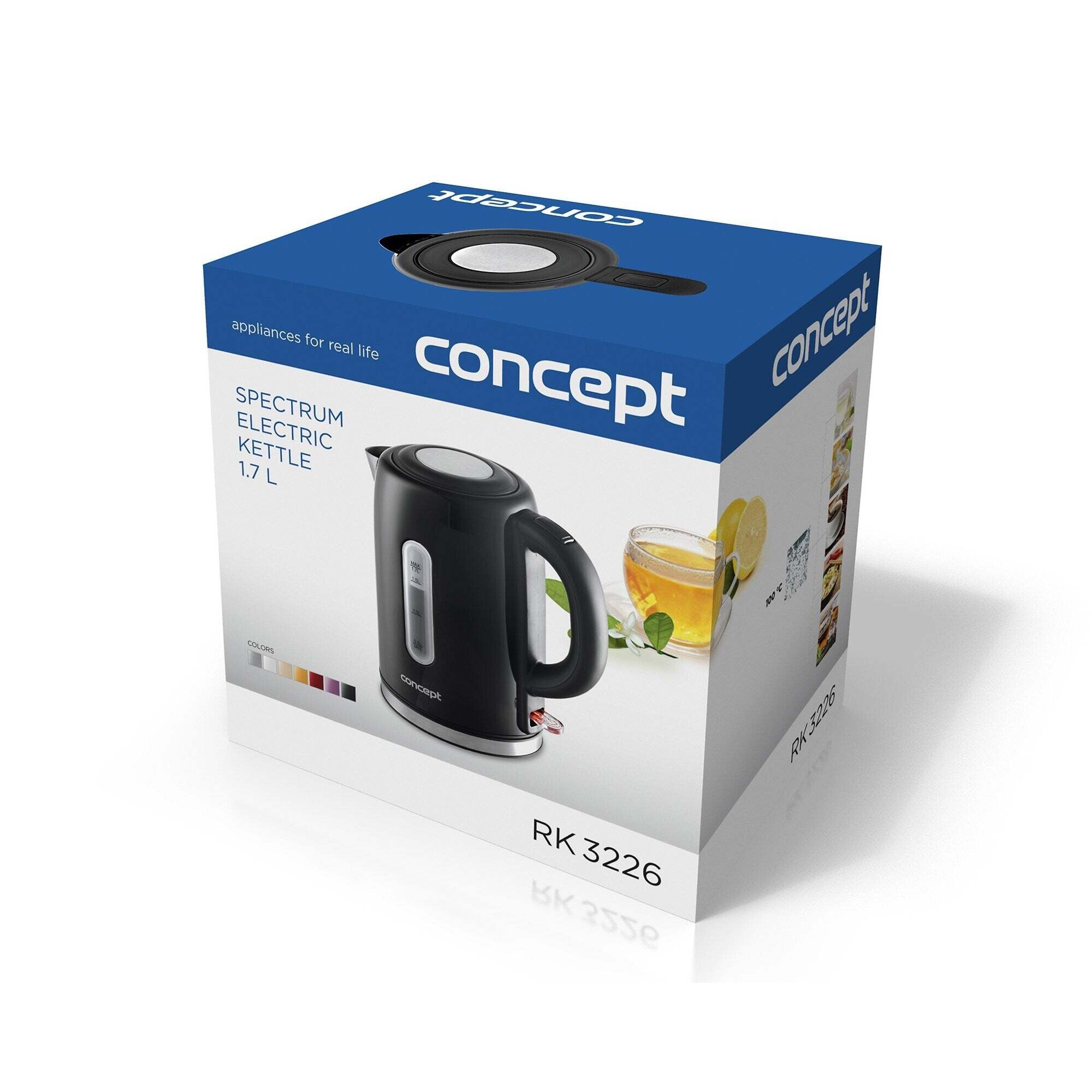 Elegantná a praktická kanvicaRýchlovarná kanvica Concept RK 3226 s objemom 1,7 litra vás zaujme hneď na prvý pohľad svojim kvalitným nerezovým spracovaním v čiernej farbe. Vyniká svojím širokým telom, ktoré umožňuje ľahšie čistenie, ale napríklad aj užitočným bezpečnostným systémom, ktorý po dovarení vody kanvicu automaticky vypne.
