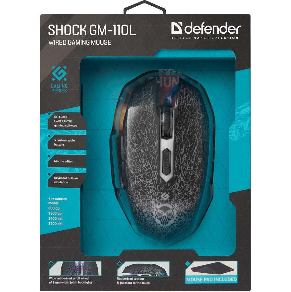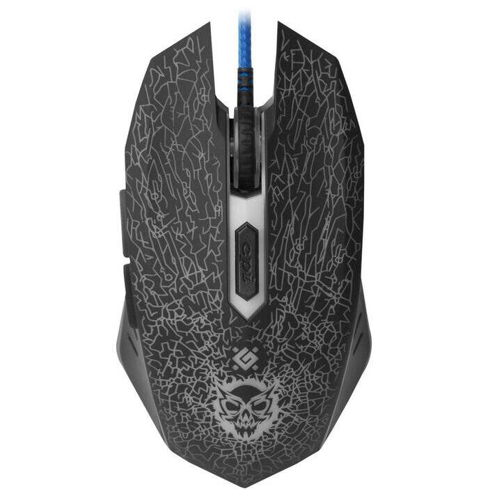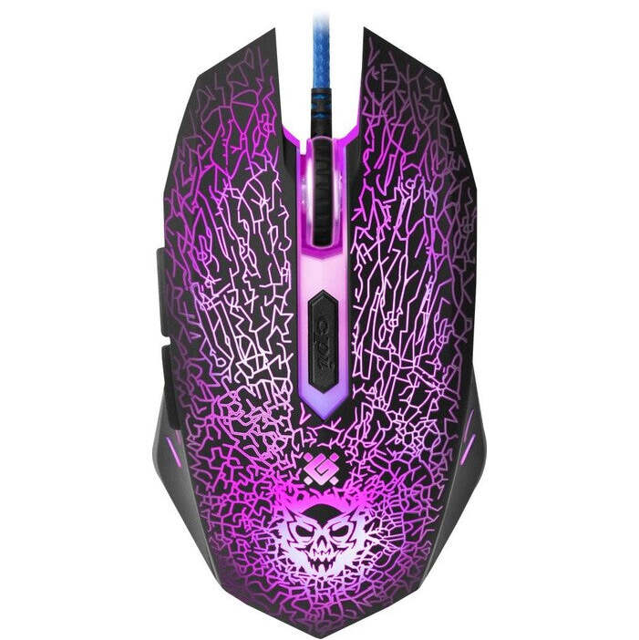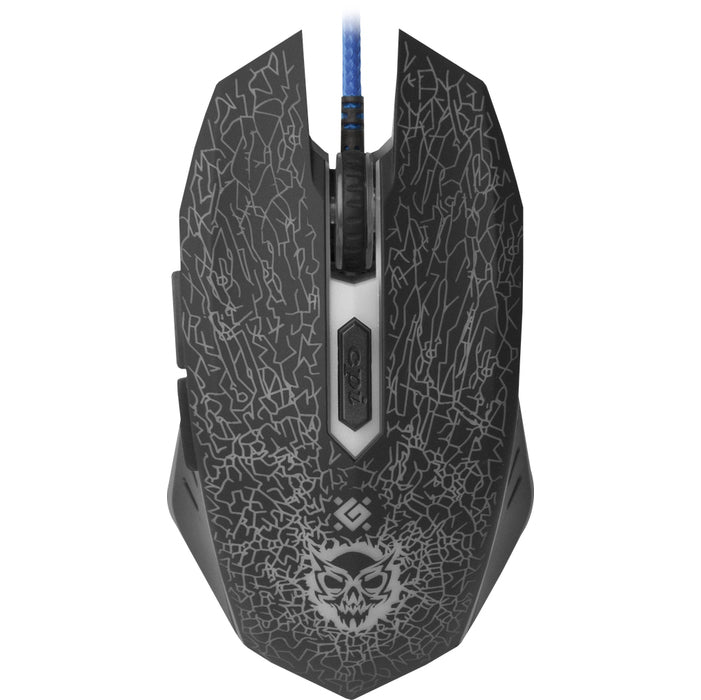 Štýlové podsvietenieKaždá herná myš musí okrem skvelých parametrov vynikať aj štýlovým dizajnom. Defender Shock toho docielil najmä pôsobivým čiernym prevedením s pavučinovým vzorkou, ktorý je, rovnako ako ovládacie prvky, farebne podsvietený.