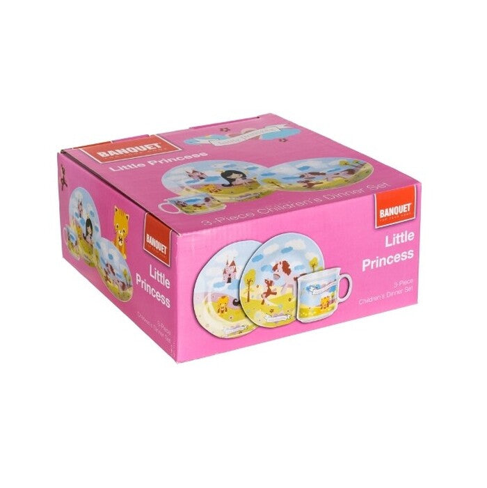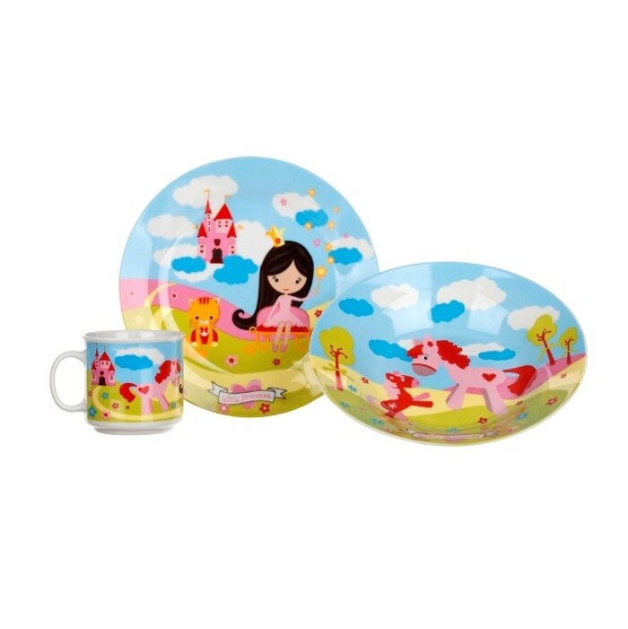 Detská jedálenská súprava Banquet Little princesKúpte vašej malej princeznej tento nádherný trojdielny set s prekrásnym farebným motívom, ktorý ju iste poteší a okamžite si ho zamiluje. Na každé jedlo sa bude tešiť a pre vás, ako rodiča, už nebude také ťažké do vášho dieťaťa dostať nejaké jedlo. Set sa skladá z hlbokého a plytkého taniera, oba s priemerom 20 cm a hrnčeka, ktorý má objem 210 ml. |
