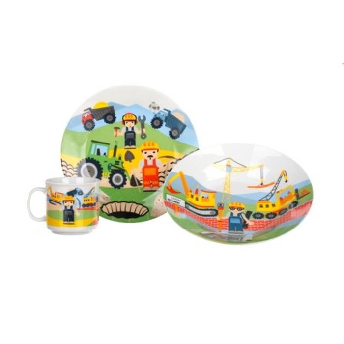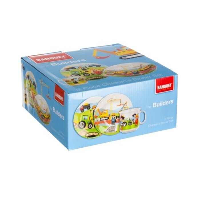 Detská jedálenská súprava Banquet The BuildersZaobstarajte vášmu malému staviteľovi túto nádhernú trojdielnu súpravu s prekrásnym farebným motívom, ktorý ho určite poteší a okamžite si ju zamiluje. Na každé jedlo sa bude tešiť a pre vás ako rodiča to už nebude také ťažké do vášho dieťaťa dostať nejaký pokrm. Súprava sa skladá z hlbokého a plytkého taniera oba s priemerom 20 cm a hrnčeka, ktorý má objem 210 ml. |