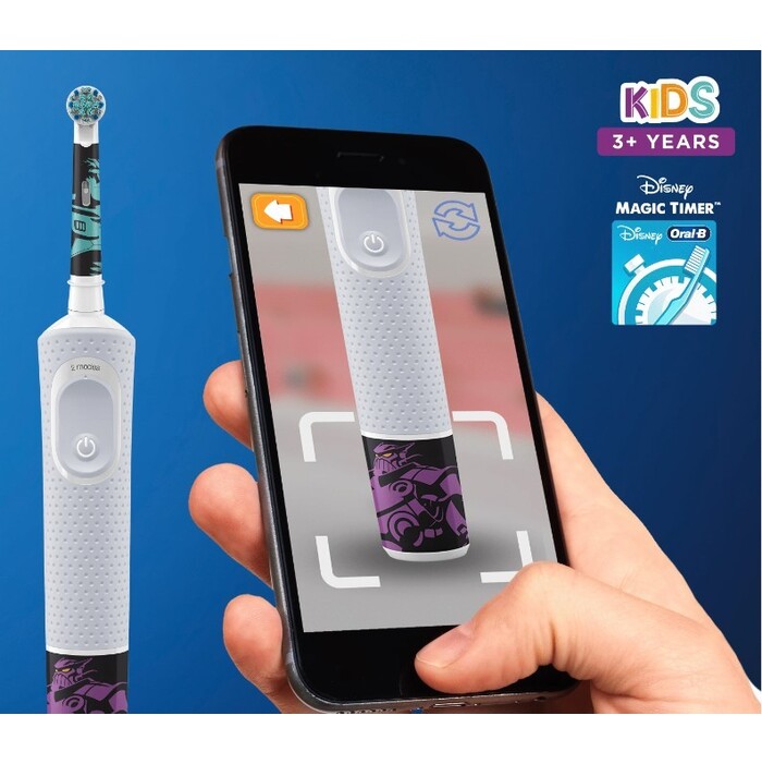 Zábava s obľúbenými hrdinamiV balení získate aj štyri samolepky s motívom obľúbenej Disney rozprávky Rakeťák. Vaše dieťa si s nimi môže kefku ozdobiť po svojom. Môžete tiež využiť bezplatnú aplikáciu Disney Magic Timer, v ktorej budú vaše deti postupne odkrývať a zbierať virtuálne samolepky zakaždým, keď si vyčistia zuby predpisovo za dve minúty. Pokiaľ aplikáciu nemáte, využijete klasický časovač v kefke. |