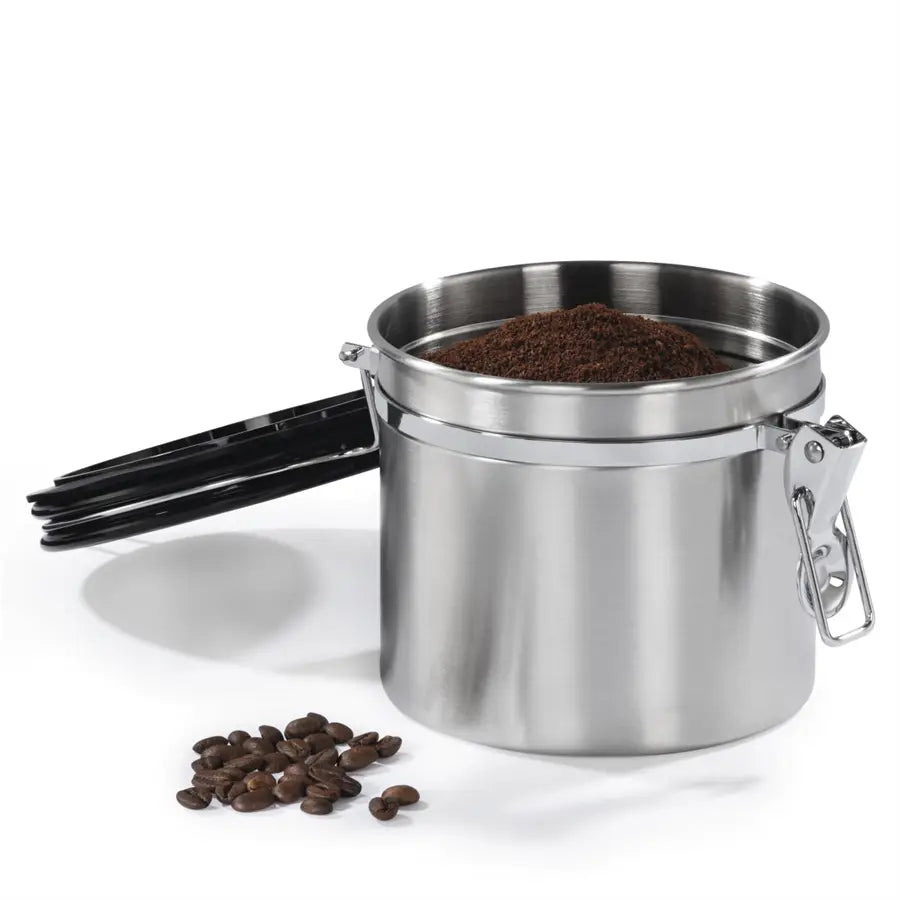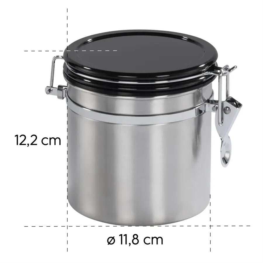 Dóza na kávu Xavax,500g, striebornáPraktická malá dóza Xavax s objemom 1,1 l na skladovanie kávy, ale aj iných potravín ako napríklad čaj, kakao, cukor alebo cestoviny. Pojme 500 g mletej kávy, prípadne 420 g kávových zŕn. Vzduchotesné viečko z plastu zaistí, že žiadna z uložených surovín nevyčuchne, uchová si tak svoju arómu a zároveň chráni pred vlhkom. Ušľachtilá oceľ zase zaistí, že materiál nepojme cudzie pachy, teda sa nemusíte obávať, že by som chytilo vôňu predchádzajúcej suroviny. Nie je vhodná do umývačky riadu a nemá vodotesnú úpravu. |