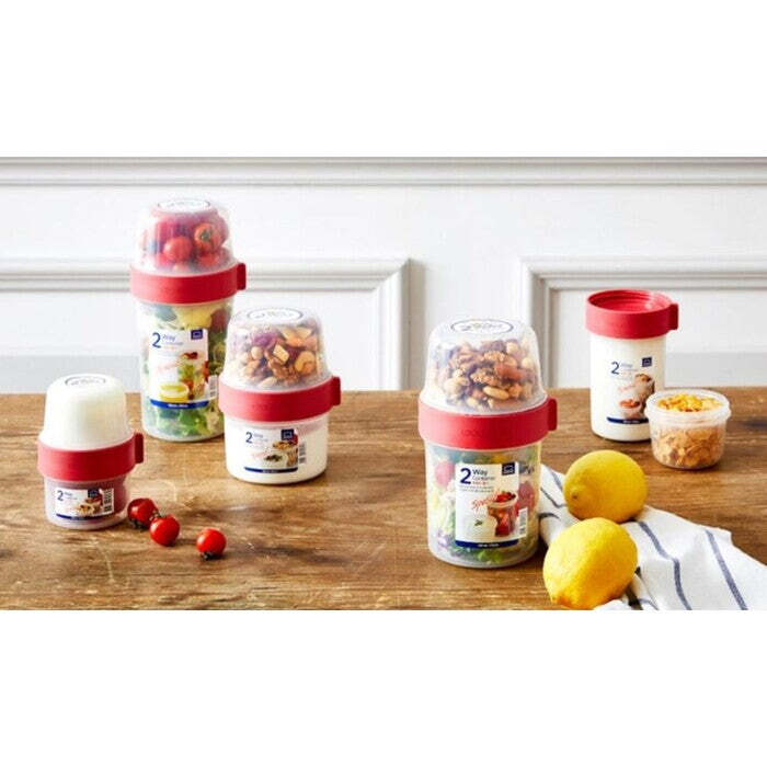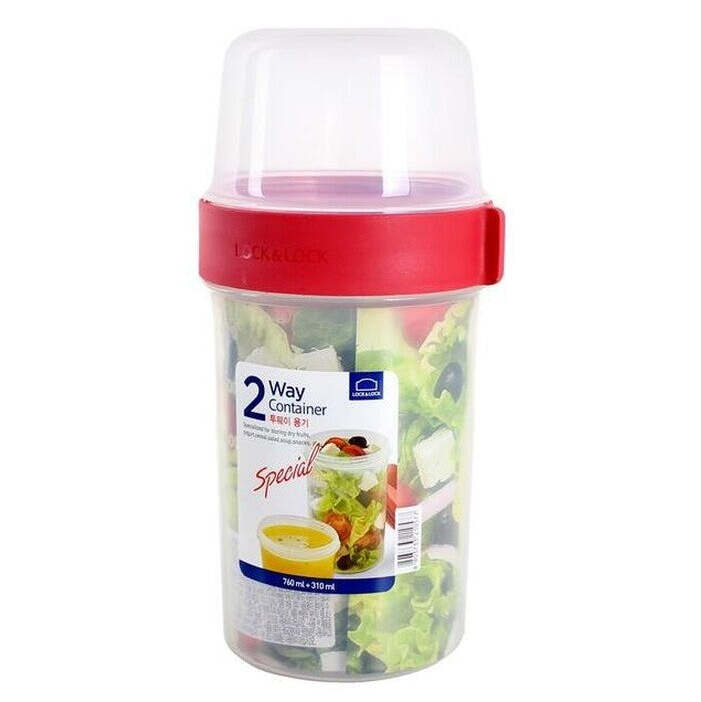 LOCK&LOCK LLS223 Dóza na potraviny 2V1, 760ml/310mlDóza na potraviny 2V1 LOCK & LOCK je ideálna pre uchovanie potravín v 100% vzduchotesnom a vodotesnom prostredí, ktoré sa postará o ich dlhodobú čerstvosť, zachovanie chuti a vône. Skladá sa z dvoch častí, ktoré sú oddelené, aby sa potraviny v nich nezmiešali. Jedna komora má objem 760 ml a druhá 310 ml (dohromady dosiahnete objem 1070 ml). |