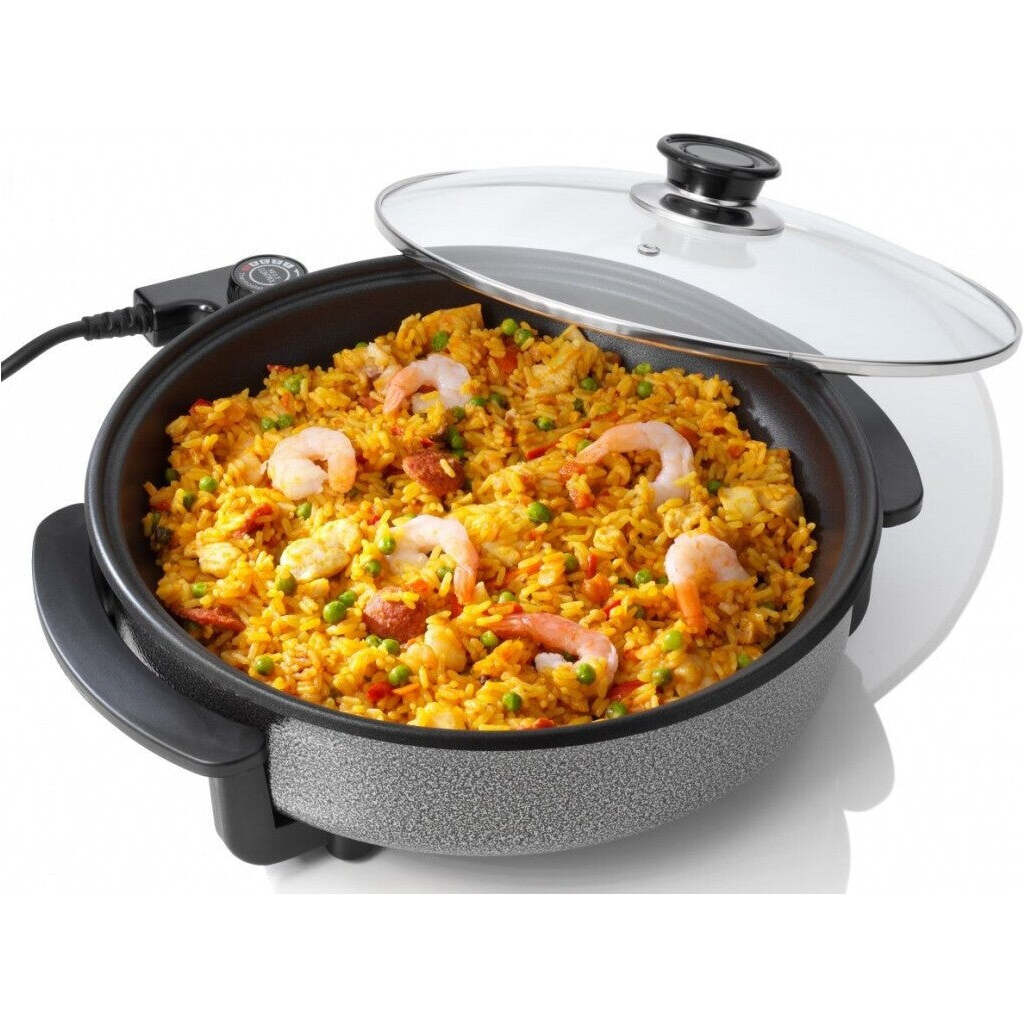 Praktické funkcieV tejto elektrickej panvici môžete piecť a vyprážať čokoľvek, od zemiakov až po ryby. Elektrická panvica na pečenie má priemer 30 cm, takže je priam ideálna pre väčšie rodiny. Navyše je vybavená odnímateľným termostatom na šnúre. Povrch je nepriľnavý, takže jeho údržba bude ľahká a rýchla. Vďaka priehľadnému veku bude ľahké prípravu jedla kontrolovať bez toho, aby ste museli s niečím hýbať. Veko obsahuje tiež parný výfuk. |