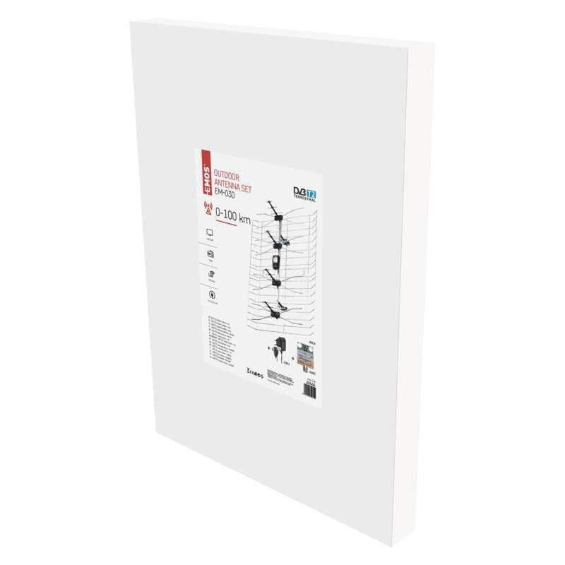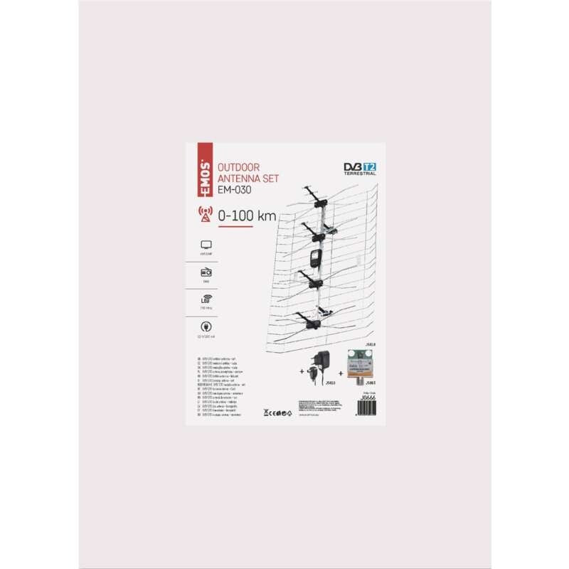 Širokopásmová anténa s nízkošumovým zosilňovačom Emos EM-030 obsahuje zosilňovač v celokovovom tele, ktorý obmedzuje vonkajšie rušenie antény. Osvedčená konštrukcia antény je osadená novým typom predzosilňovača, ktorý umožňuje príjem DVB-T signálu. Anténa je vhodná predovšetkým do miest, kde je nízka úroveň vysielača a je veľmi vzdialená od zdroja. Výhodou je aj integrovaný LTE filter.