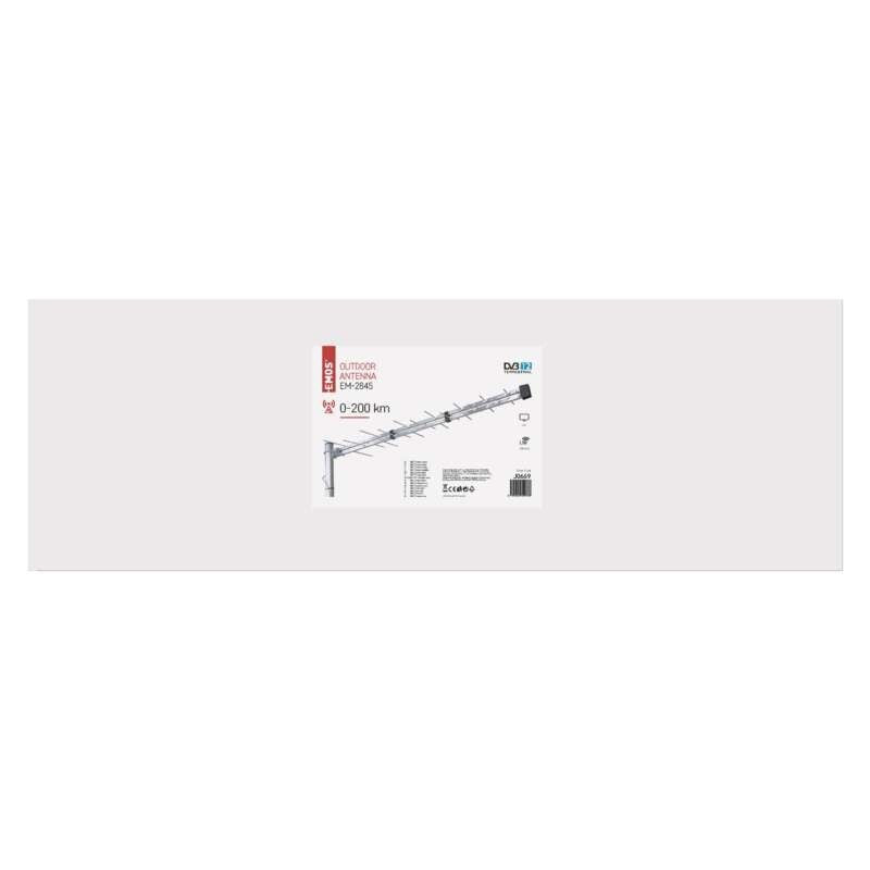 Televízna anténa EMOS EM-2845 je profesionálna anténa pre príjem DVB-T a DVB-T2 s horizontálnou a vertikálnou polarizáciou vo IV. a V. TV pásme na frekvenciách 470-790 MHz. Neprítomnosť zosilňovača anténu predurčuje na použitie v miestach s dobrými príjmovými podmienkami, oplýva však LTE / 4G filtrom, a preto ju možno použiť v i mieste sa silným rušením LTE signálom. Môže sa zároveň pochváliť vysokým ziskom 10 - 12 dB a veľmi kvalitným prevedením. Anténa má 28 prvkov a dĺžku 1035 mm. Je určená na inštaláciu na strechu s možnosťou vertikálnej aj horizontálnej montáže.