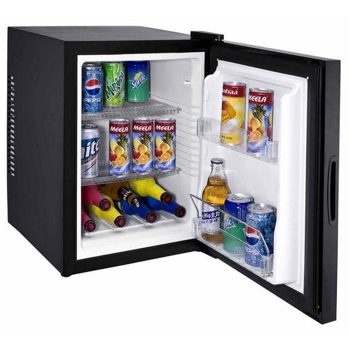 MinibarInteriér chladničky je vybavený 2 plastovými policami a 2 policami umiestnenými vo dverách, z toho je jedna výškovo nastaviteľná. Dvere minibaru je možné zameniť. |