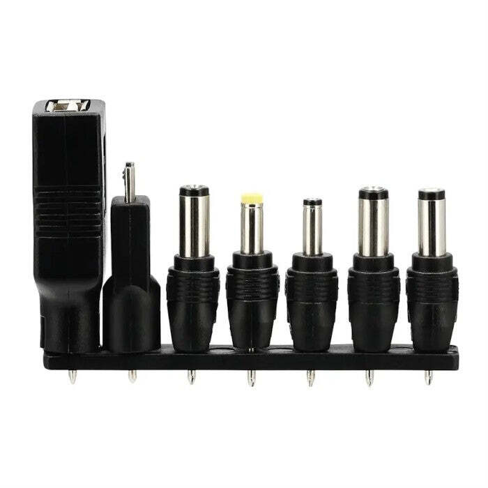 Sedem možnostíKompaktný sieťový adaptér ľahko nahradí všetky nabíjačky, ktoré doma máte. K dispozícii je 7 konektorov, ktoré sú rozdelené na USB a DC zakončenie. USB konektor je zastúpený dvakrát v podobe micro USB vidlice a USB-A zásuvky, zatiaľ čo DC konektorov je hneď 5 av rôznych veľkostiach: 1,35x3,5mm/1,7x4mm/2,1x5mm/1,5x5,5mm/2,5x5 ,5mm. |