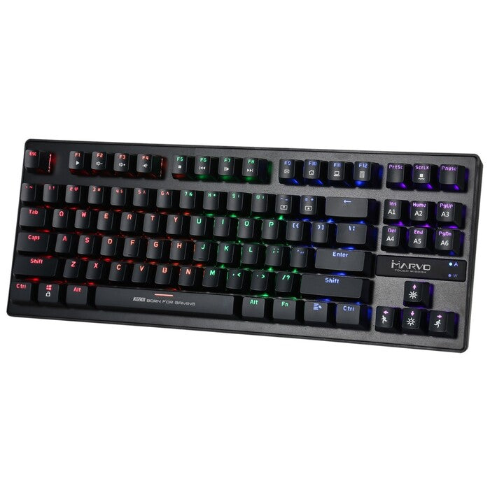 Hor sa do bojaHerná klávesnica Marv KG901 vám ponúkne všetko, čo budete potrebovať v boji. Na prvý pohľad vás zaujme svojím krásnym dúhovým podsvietením s 20-timi režimami svietenia, ktoré dodá tú správnu atmosféru počas dlhých herných večerov. Tešiť sa môžete na celkovo 87 klávesov z toho 12 multimediálnych pre rýchly prístup k praktickým funkciám, US rozloženie kláves, kvalitné spínače, prevedenie z odolného ABS plastu, plno funkcií s herným softvérom Marv, možnosť užívateľských makier alebo napríklad na funkciu N-key rollover Anti-Ghosting, ktorá umožňuje stlačiť v jeden okamih ľubovoľný počet kláves. |