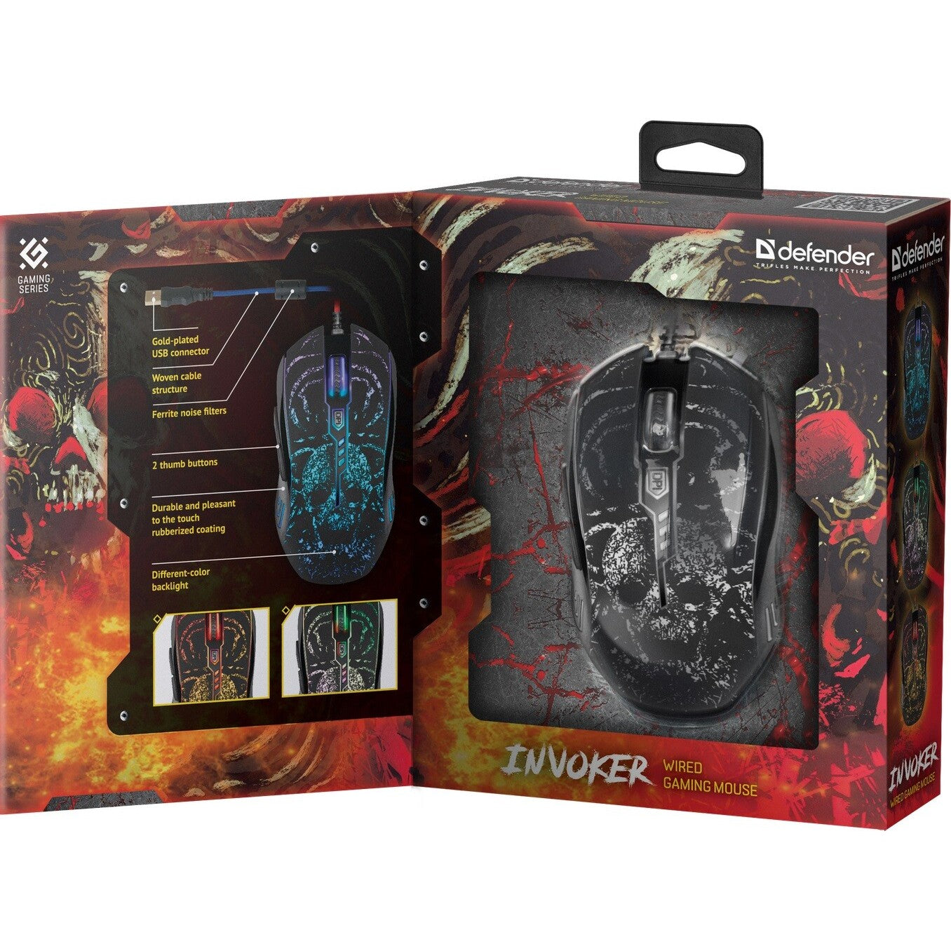 Hor sa do bojaHerná drôtová myš Defender Invoker GM-947 sa môže pochváliť kvalitným optickým senzorom s nastaviteľným rozlíšením až 3200 DPI, ktoré zaručí presné snímanie a plynulosť pohybu. Tešiť sa môžete na originálny herný dizajn, krásne dúhové podsvietenie, 5 programovateľných tlačidiel alebo napríklad na odolný a mäkký pogumovaný náter. Čerešničkou na torte je potom jednoduché pripojenie pomocou opleteného kábla s pozláteným USB konektorom. |