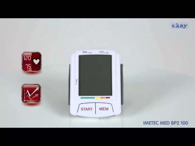 Imetec MED BP2 100 - tlakoměr na zápěstí s extra velkým displejem. BP2 100 je certifikovaný, plně automatický zápěstní měřič krevního tlaku a pulsu. Pracuje rychle a přesně a jednoduše se používá. Měří podle systému klasifikace WHO (Světová zdravotnická organizace). Detekuje arytmii (nepravidelný srdeční rytmus). Umí uložit až 2 x 60 měření - je tedy vhodny i pro dva uživatele.
