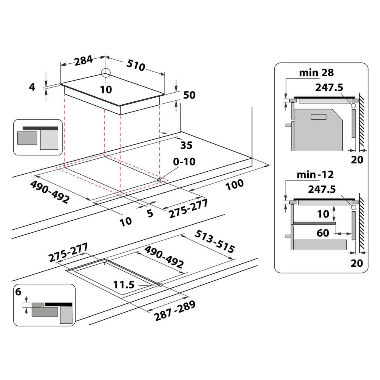 Jednoduchá inštaláciaIndukčná varná doska je vhodná aj do výrezu namiesto plynovej dosky, nie sú teda nutné úpravy ani prispôsobenie kuchynskej linky. Určite vás tiež poteší, že na inštaláciu spotrebiča postačí aj kuchynská pracovná doska s minimálnou hrúbkou. V prípade inštalácie nad vstavanú rúru stačí iba 28 mm, bez rúry 12 mm. |