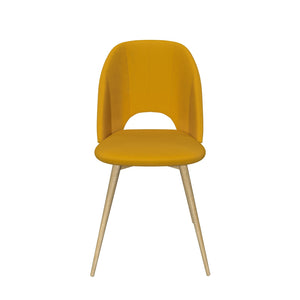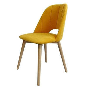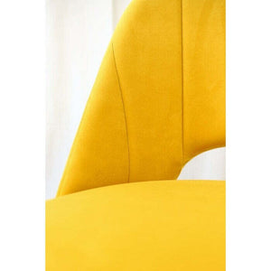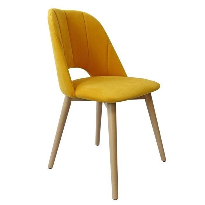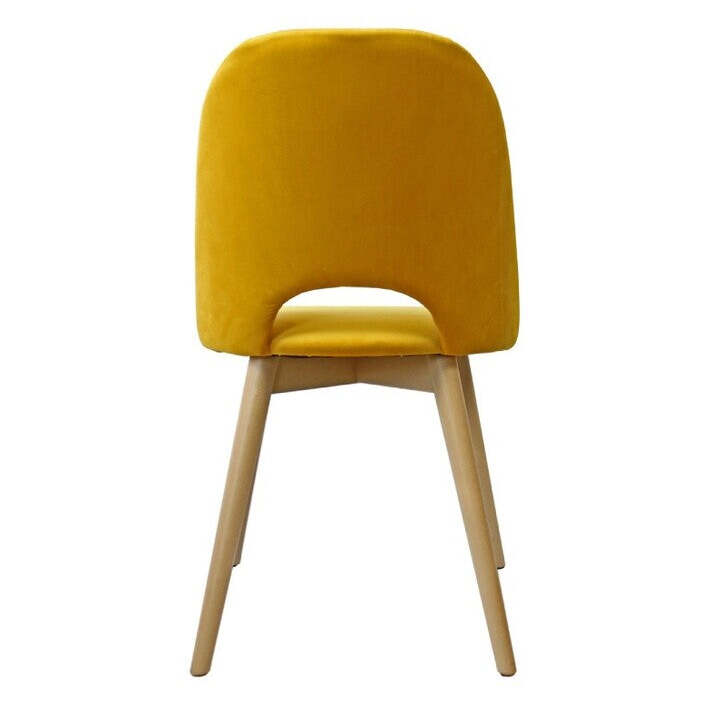 Žltá jedálenská stolička GredePohodlná stolička navrhnutá v modernom dizajne, taká je jedálenská stolička Grede. Poťahovým materiálom sedadla a operadla je kvalitná látka veľmi príjemná na dotyk. Čalúnené sedadlo a operadlo stoličky prispievajú k pohodlnému posedeniu. Drevená konštrukcia, ktorá sa podieľa na nosnosti až 100 kg, sa postará o vašu stabilitu, kedykoľvek sa na stoličke usadíte.