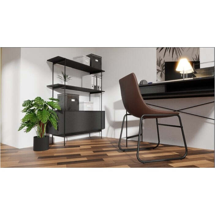 Jedálenská stolička GuaroJedálenská stolička Guaro ponúka pohodlné miesto na sedenie pri stolovaní. Medzi jej prednosti patrí stabilita, ktorá je zrejmá už z pohľadu, a taktiež výber kvalitných materiálov, ktoré stoja za jej dlhodobou životnosťou. Sedacia časť a operadlo sú potiahnuté kvalitnou eko kožou v tmavo hnedej farbe. Ide o materiál, ktorý sa jednoducho udržiava. K čisteniu postačí vlhká látková handrička, poprípade bežný neagresívny saponát. Zaujímavá je taktiež čierna kovová konštrukcia, ktorá umocňuje celkový vzhľad stoličky. Hodí sa predovšetkým do moderne zariadenej jedálne či kuchyne.