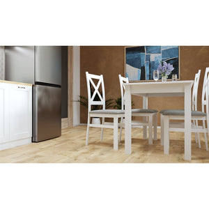 Biela jedálenská stolička KasperAk hľadáte kvalitnú jedálensku stoličku vo svetlom dekore, stolička do jedálne Kasper je pre vás tou pravou voľbou. Pevná konštrukcia stoličky je základom pre jej nadštandardnú nosnosť 120 kg. Pohodlné sedenie zaisťuje mäkké sedadlo a vysoké operadlo. Stoličku Kasper môžete využiť samostatne v jedálni či kuchyni, kde bude plniť funkciu rezervného miesta pre viacčlennú návštevu či priestor pre občasný odpočinok pri varení alebo v zostave k jedálenskému stolu, kde budete tráviť príjemné chvíle pri rodinnom obede. Možností, ako môžete stoličku do kuchyne Kasper prakticky využiť je naozaj veľa a závisia len na vašej tvorivosti.