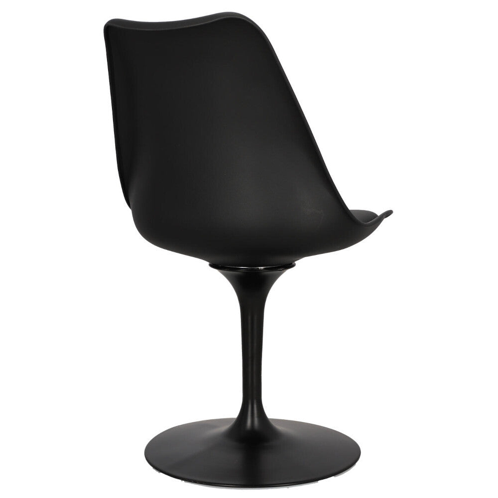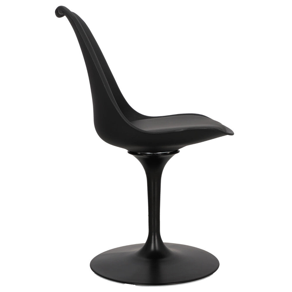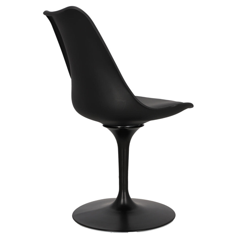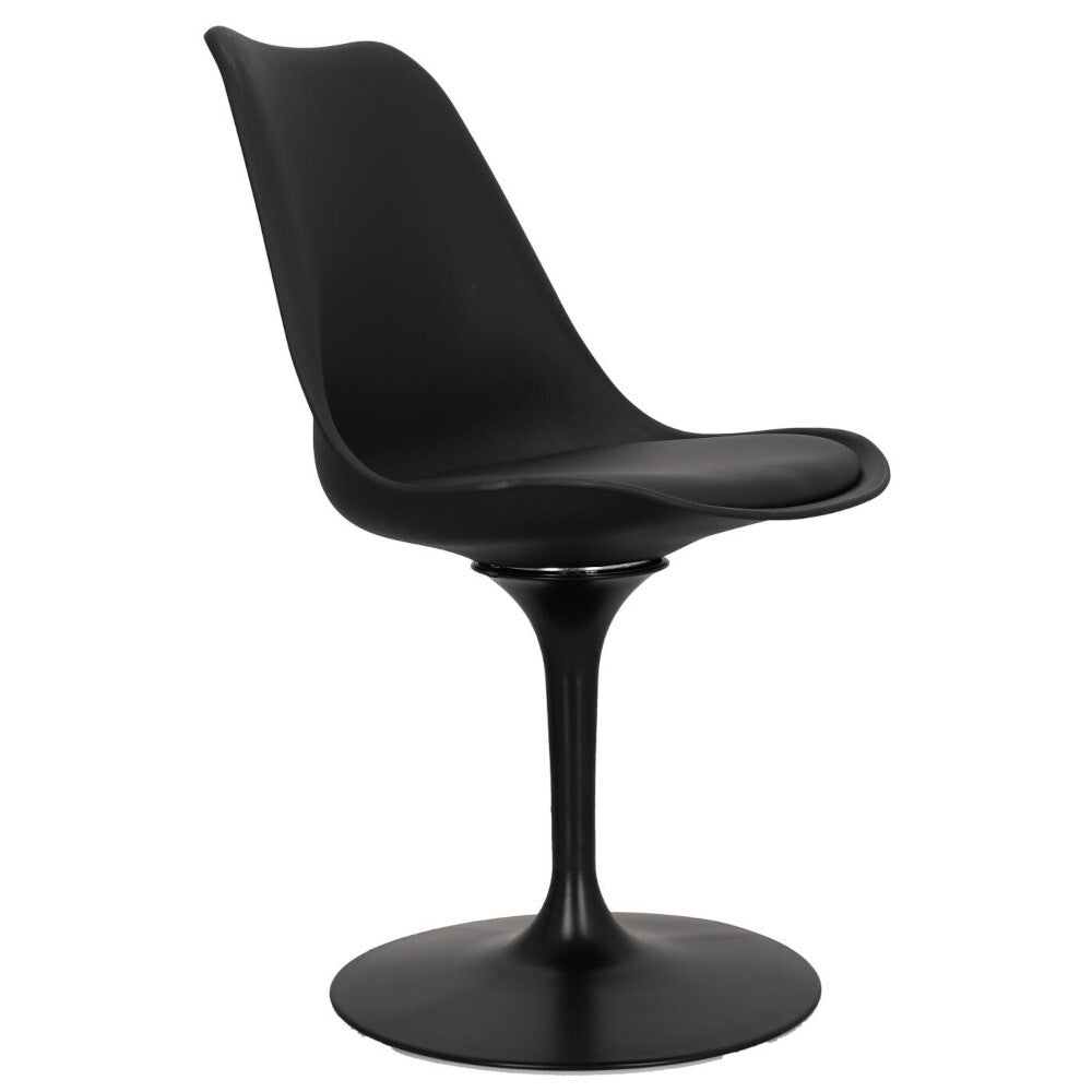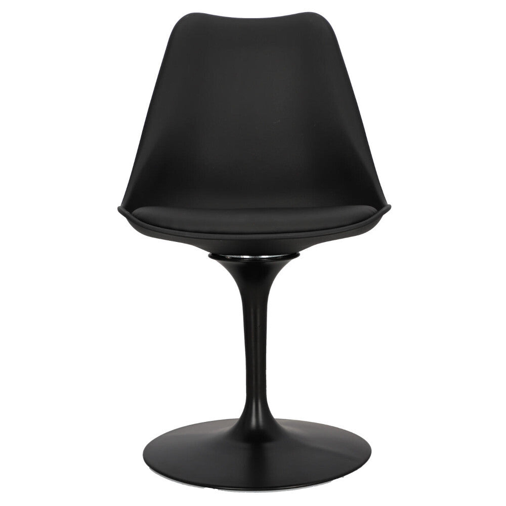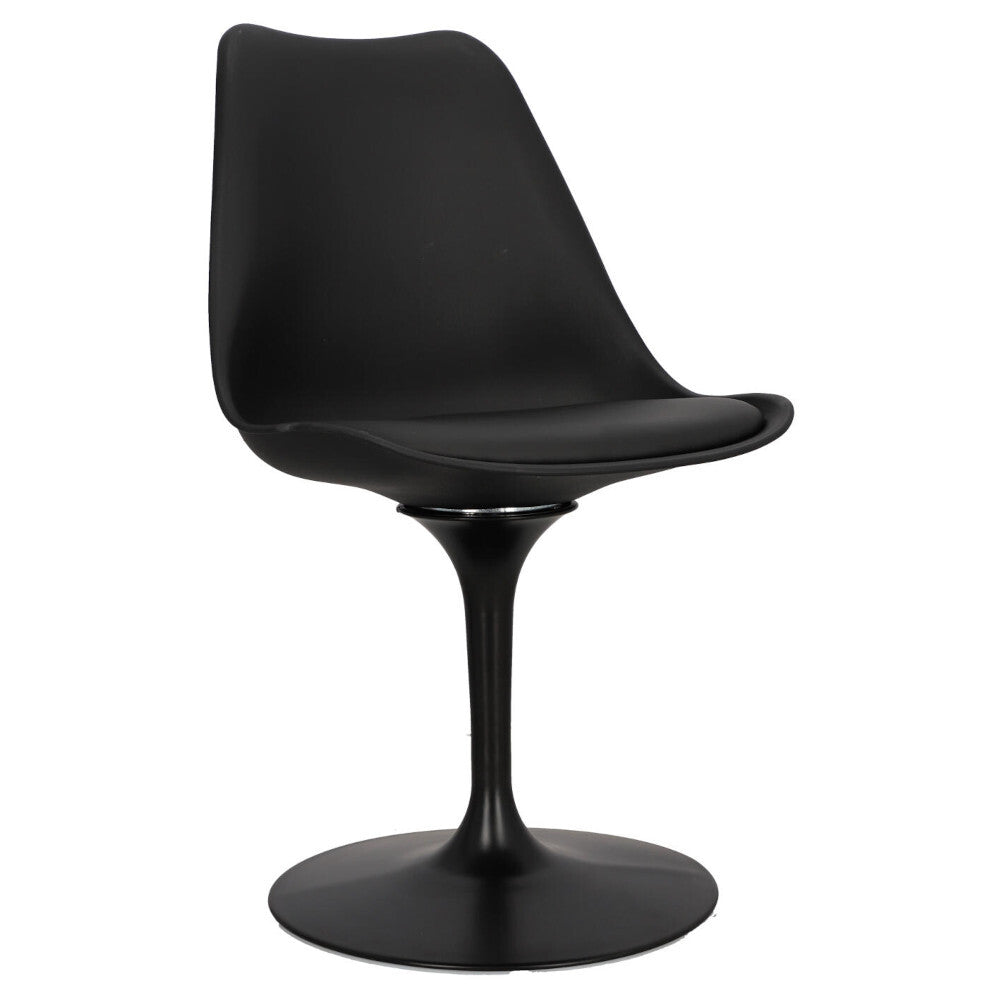 Jedálenská stolička TulipJedálenská stolička Tulip sa vďaka svojmu modernému dizajnu stane ideálnou voľbou pre vašu jedáleň. Svojím štýlom a prevedením je jednou z najviac vyhľadávanejšou stoličkou. Je potiahnutá kvalitnou eko kožou v čiernej farbe, ktorá je veľmi odolná. Sedák aj operadlo sa aj napriek svojmu jednoduchému tvaru stane zárukou pohodlného sedenia. Pevná kruhová kovová základňa zaisťuje dostatočnú stabilitu a tým aj bezpečné sedenie pri stole. Navyše disponuje vysokou nosnosťou až 110 kg. Jedálenská stolička Tulip je skvelou voľbou pri zostavovaní novej jedálne a skvele doplní jedálenské stoly. Použité materiály sú zárukou dlhej životnosti.