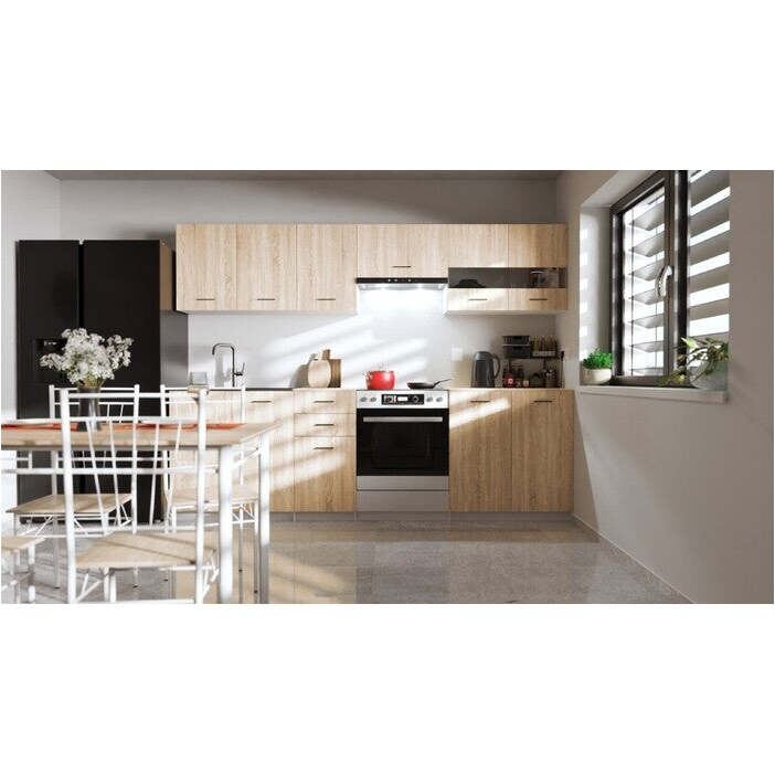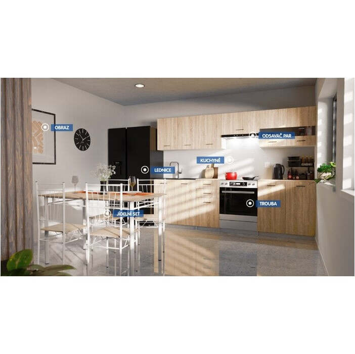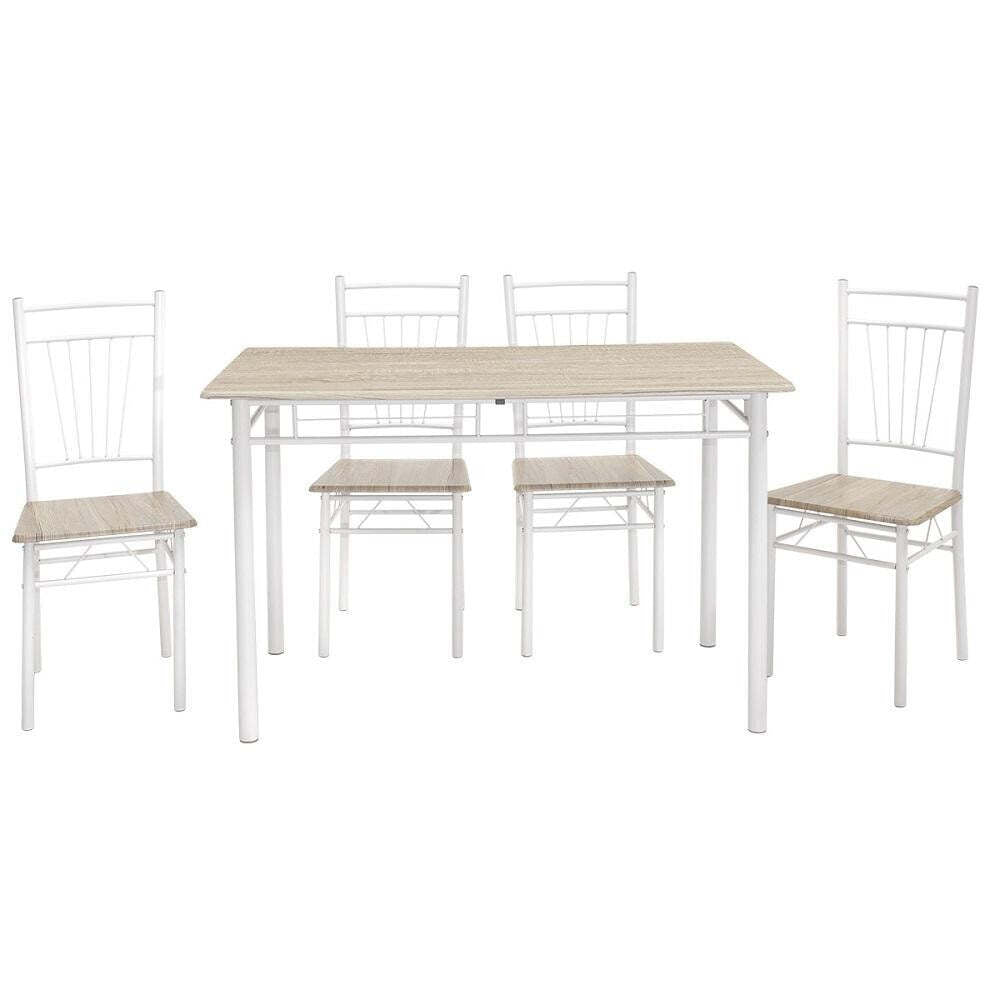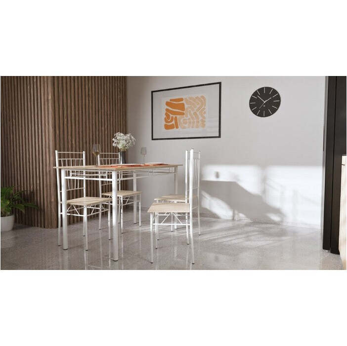 Jedálenský set RaulJedálenský set Raul vám poskytne pohodlné miesto ako na rodinné stretnutia, tak aj pre spoločné chvíle s priateľmi napríklad pri dobrej káve či víne. Súčasťou setu je jedálenský stôl a štyri stoličky s vysokými operadlami. Vyhotovenie v dekore prírodného dreva v kombinácii s bielym odtieňom pôsobí veľmi vkusne a vykúzli tú pravú idylickú atmosféru. Stane sa tak nenahraditeľnou súčasťou vášho interiéru a súčasne i neobyčajným doplnkom.
